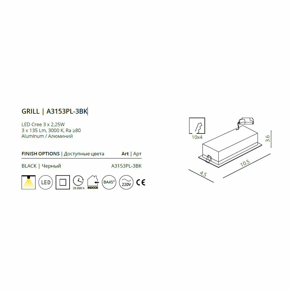 Arte Lamp Встраиваемый светодиодный светильник Arte Lamp Grill A3153PL-3BK интересное: