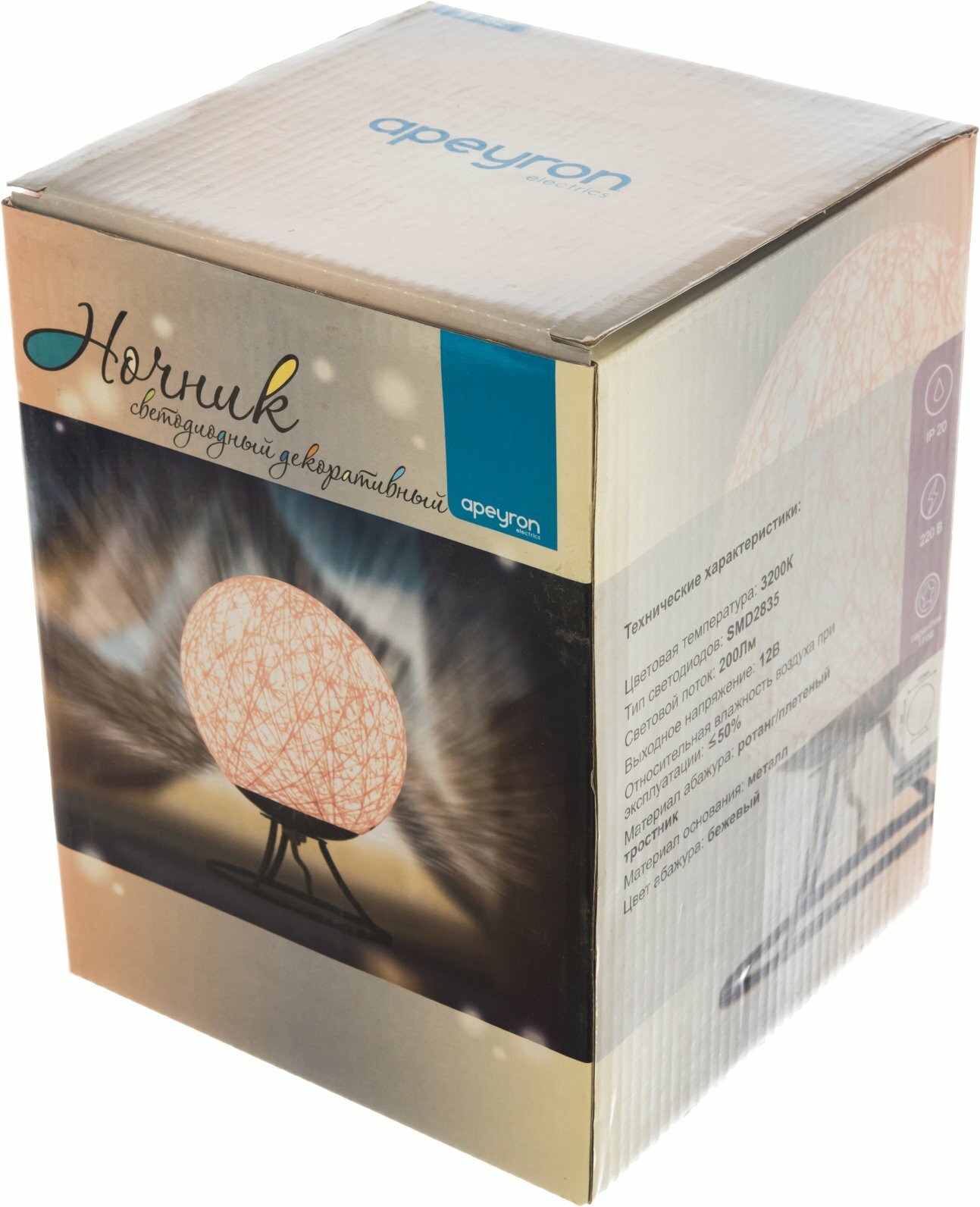 Apeyron Светодиодный ночник из ротанга, 220В, 2Вт, 6 диодов, 3200K, 200Лмголубой 12-80 .
