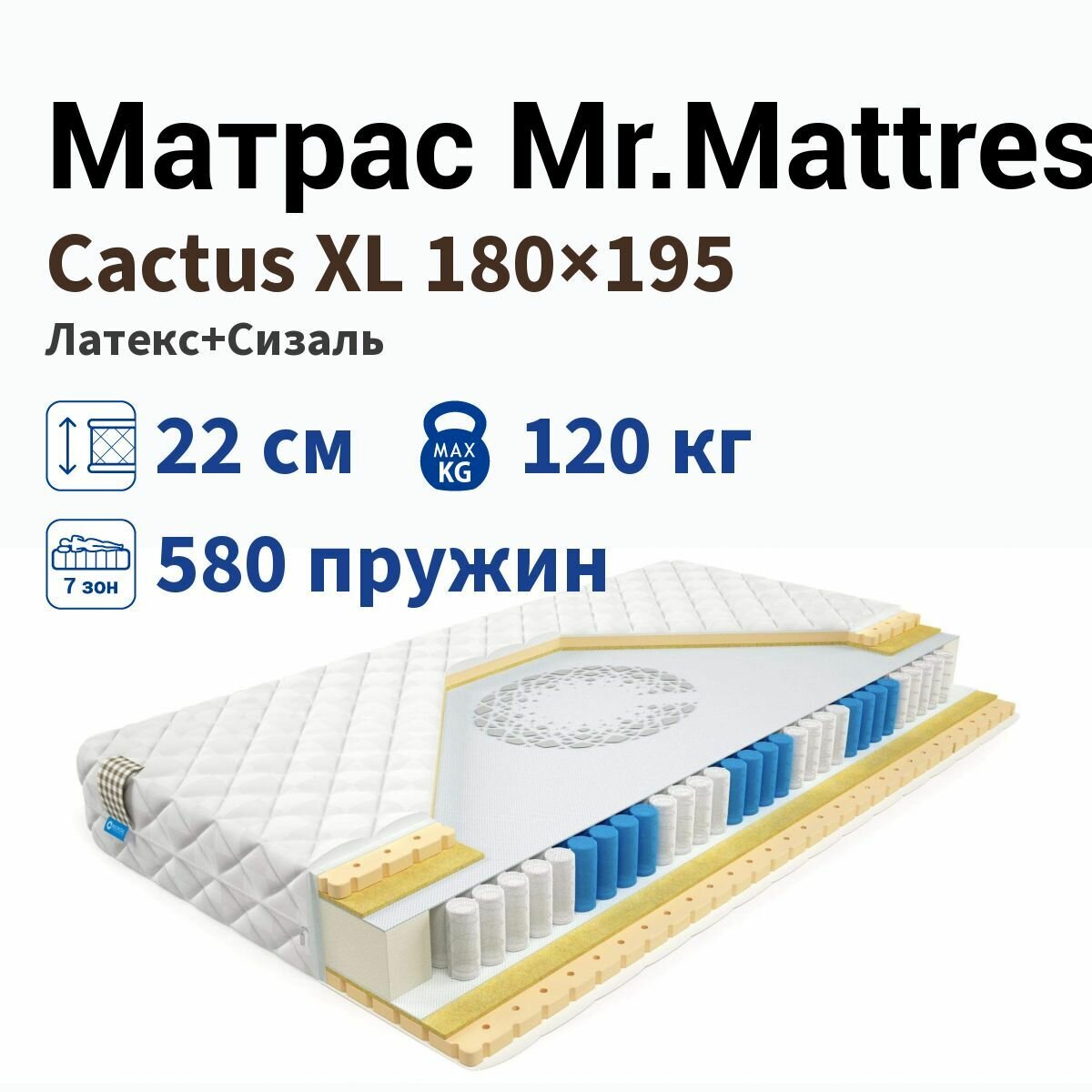 Матрас Mr.Mattress Cactus XL, Размер 185х200 см