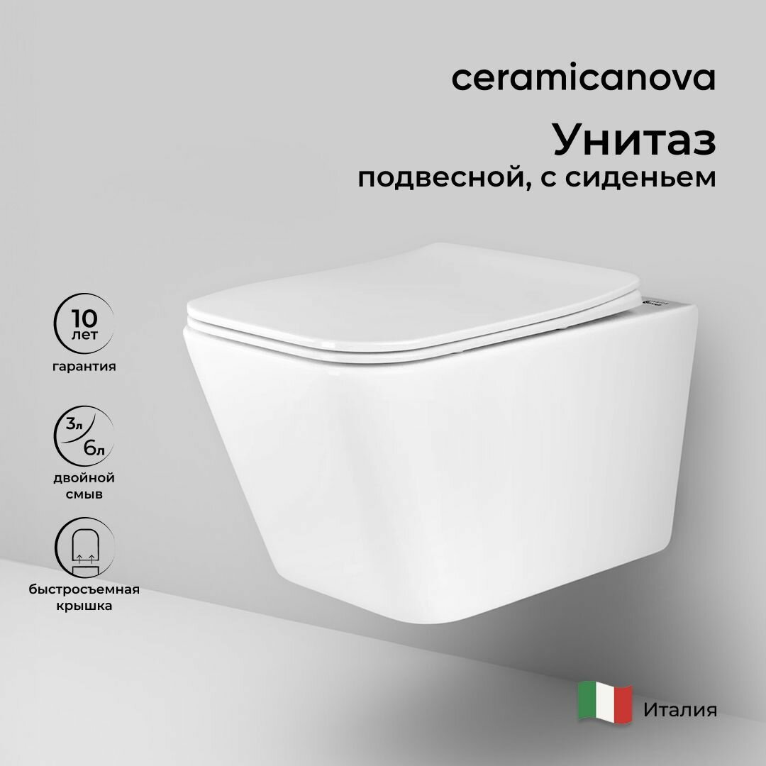 Купить Подвесной унитаз Ceramicanova Metric Rimless безободковый с микролифтом CN3007