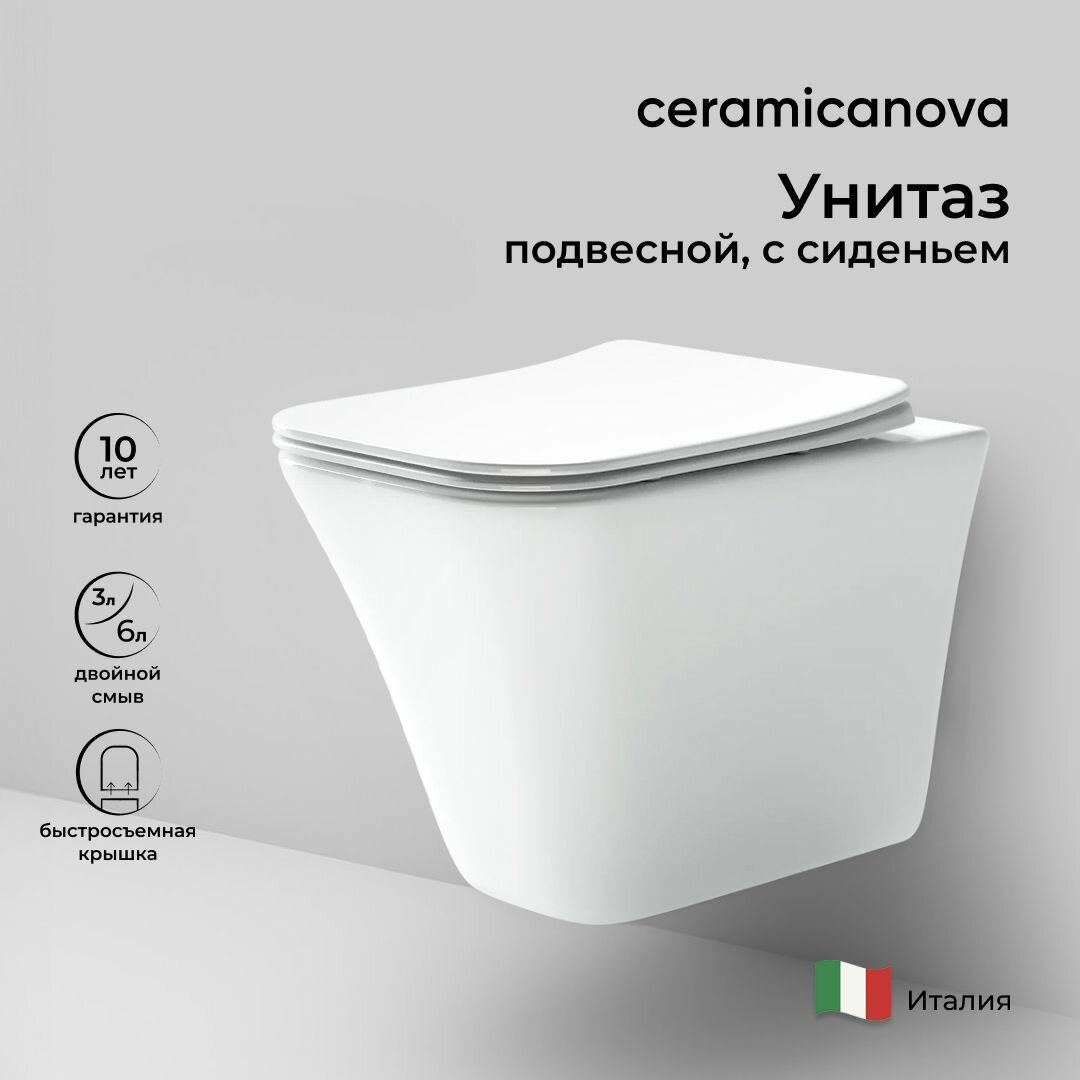 Унитаз подвесной безободковый Ceramicanova Mono Rimless с крепежом, с сиденьем микролифт (CN1902)