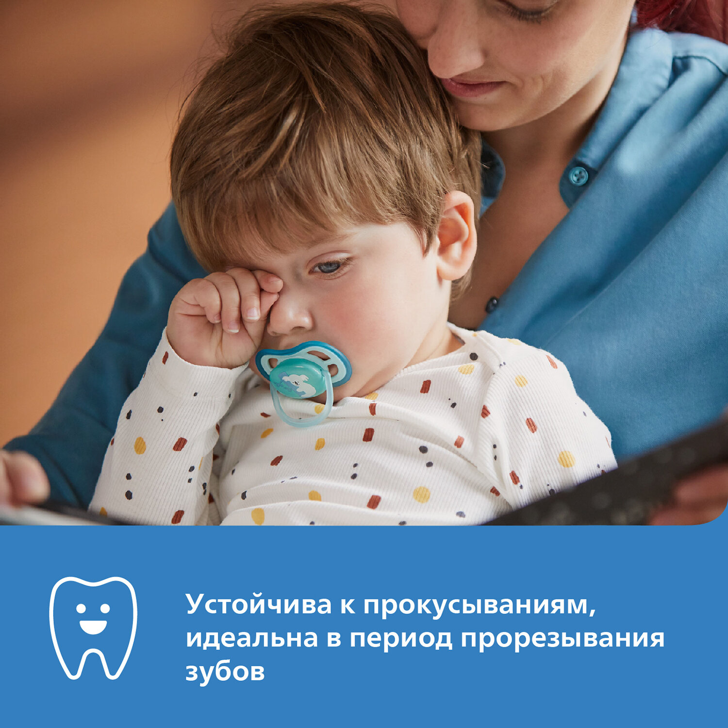 Avent Пустышка силиконовая Ultra Air для мальчика 18 мес SCF349/11 декор, 2 шт