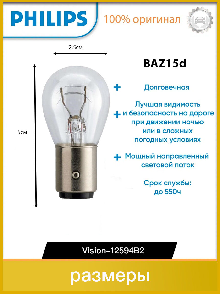 Автолампа Philips 12594B2 P21/4W 12V 21/4W Baz15d Vision (Б2/40) Philips арт. 12594B2
