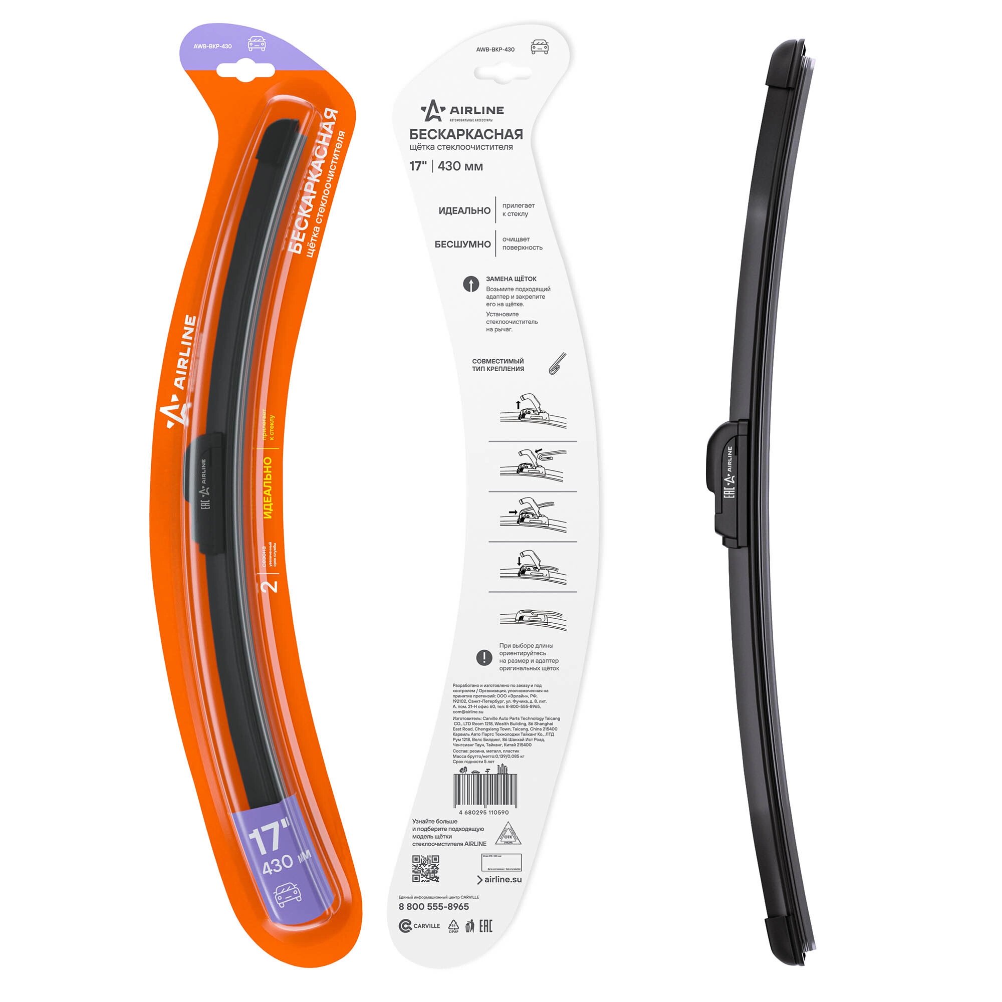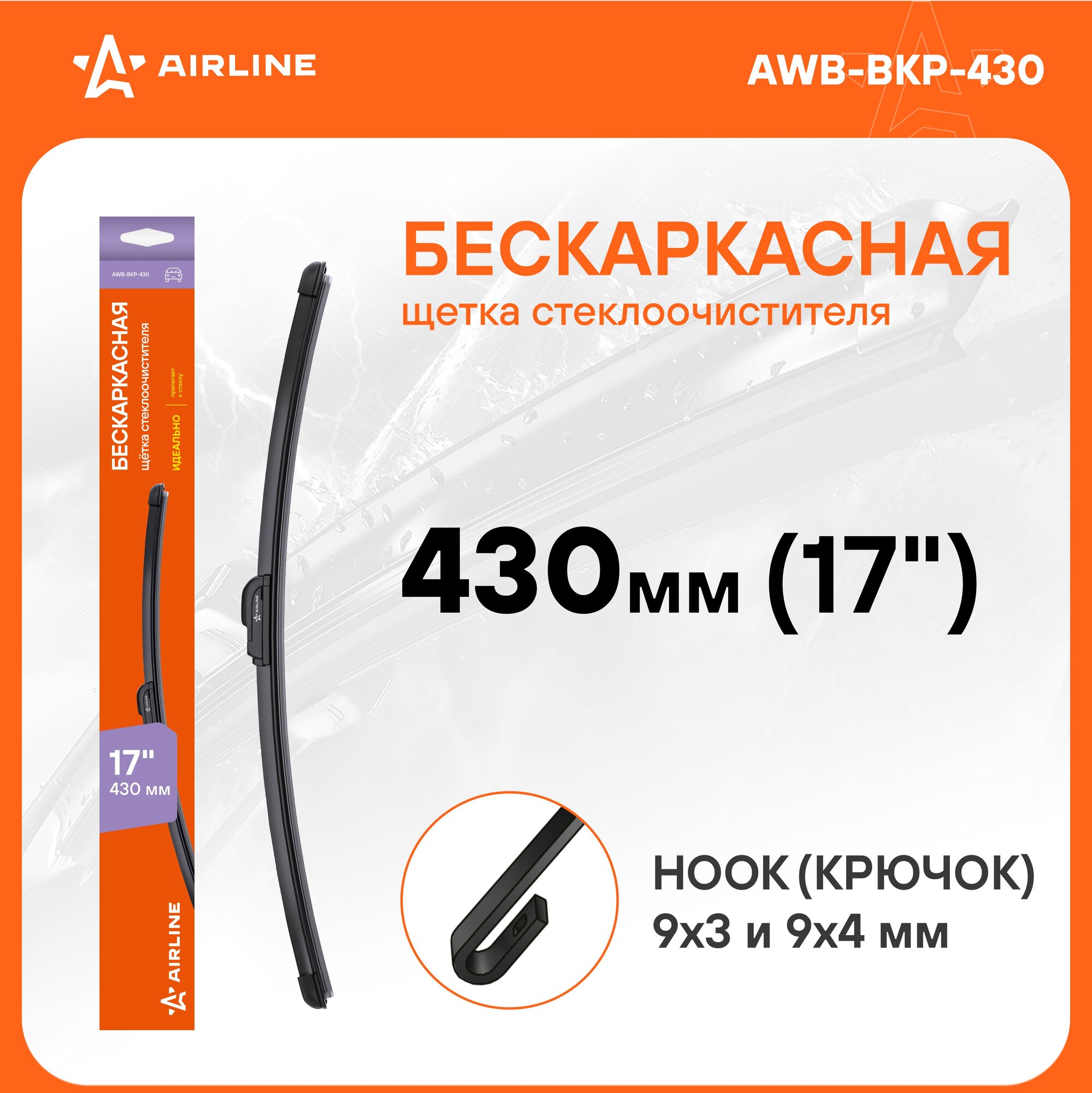 Щетка Стеклоочистителя 430мм (17) Бескаркасная, 1 Адаптер (Hook 9x3) (Awb-Bkp-430) AIRLINE арт. AWBBKP430