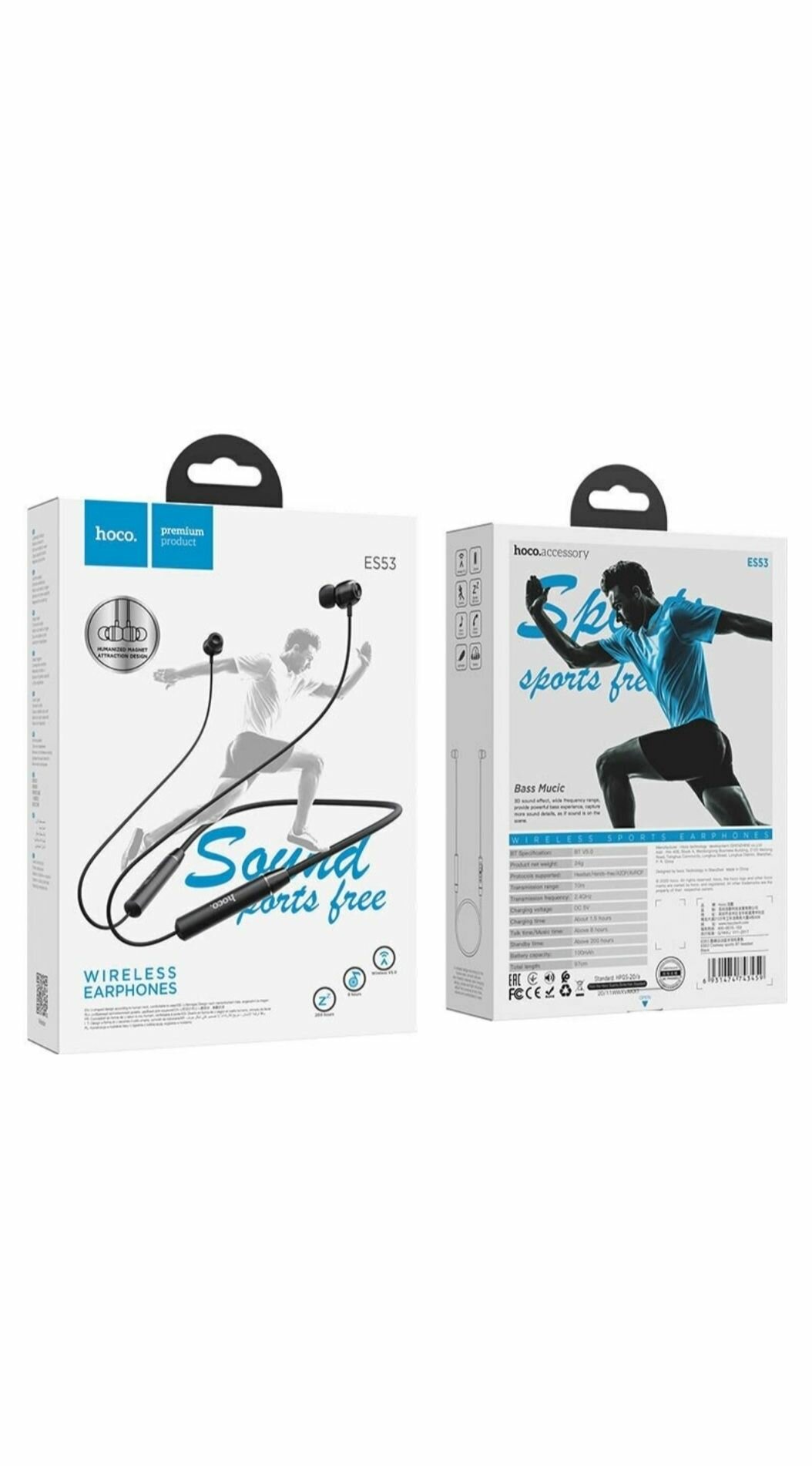 Беспроводные наушники ES53, HOCO, спортивные наушники с обручем вакуумные, черные
