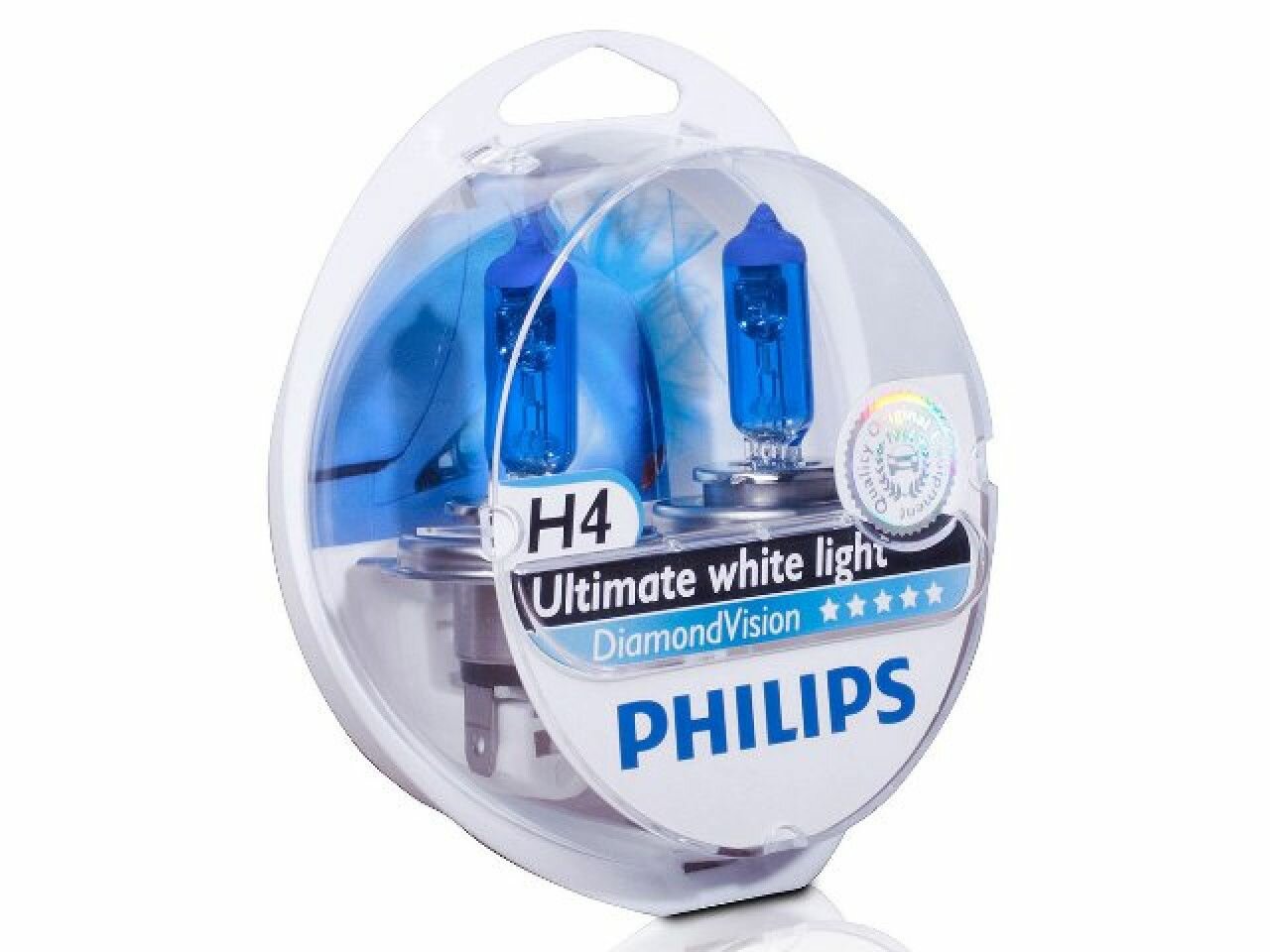 Лампа галогеновая h4 12v 60/55w philips diamond vision p14.5s (2 шт.)
