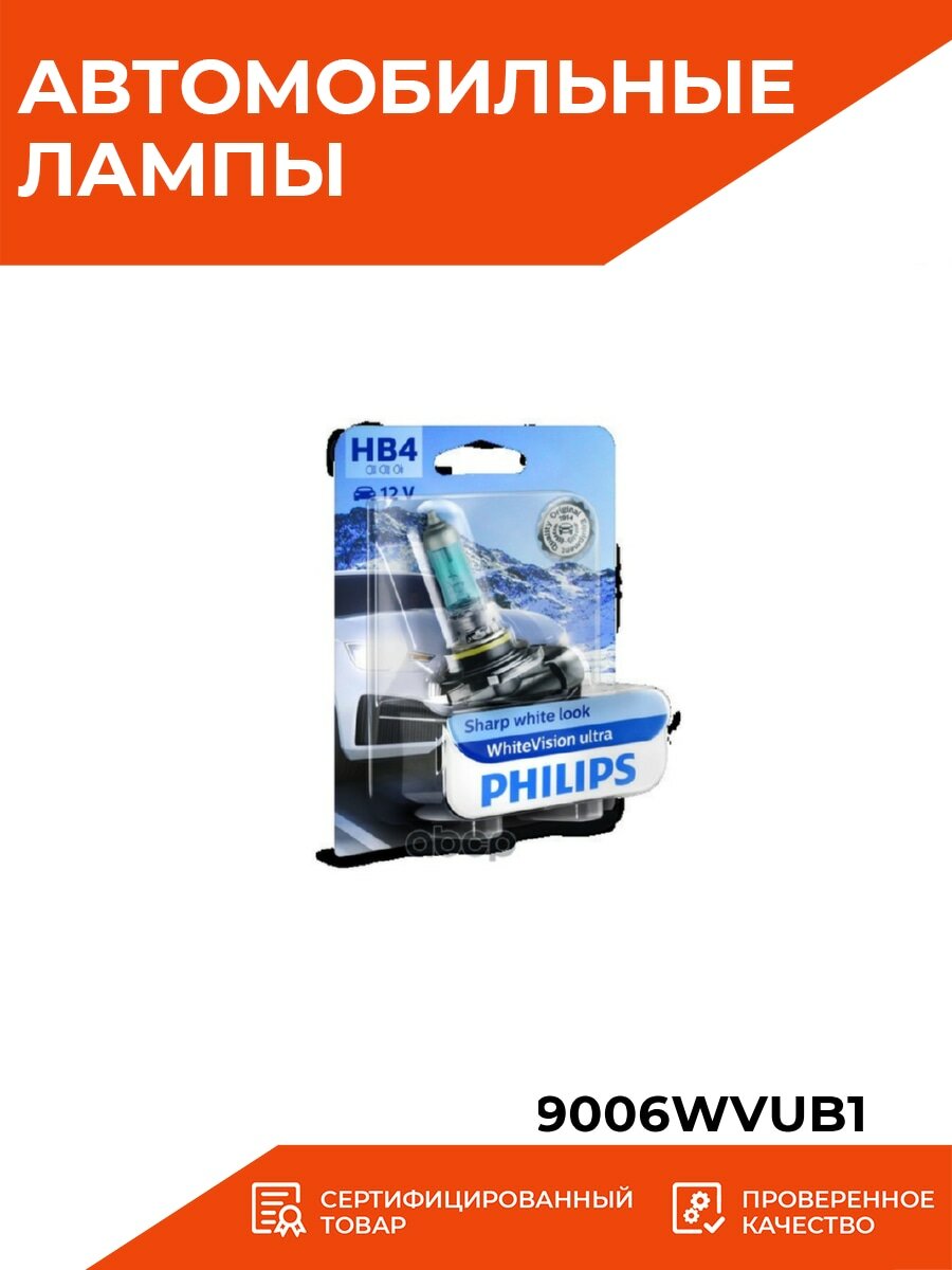 Лампа Галогеновая Головного Света Hb4 P22d 4200k White Vision Ultra 12v 51w Блистер 1 Шт Philips арт. 9006WVUB1