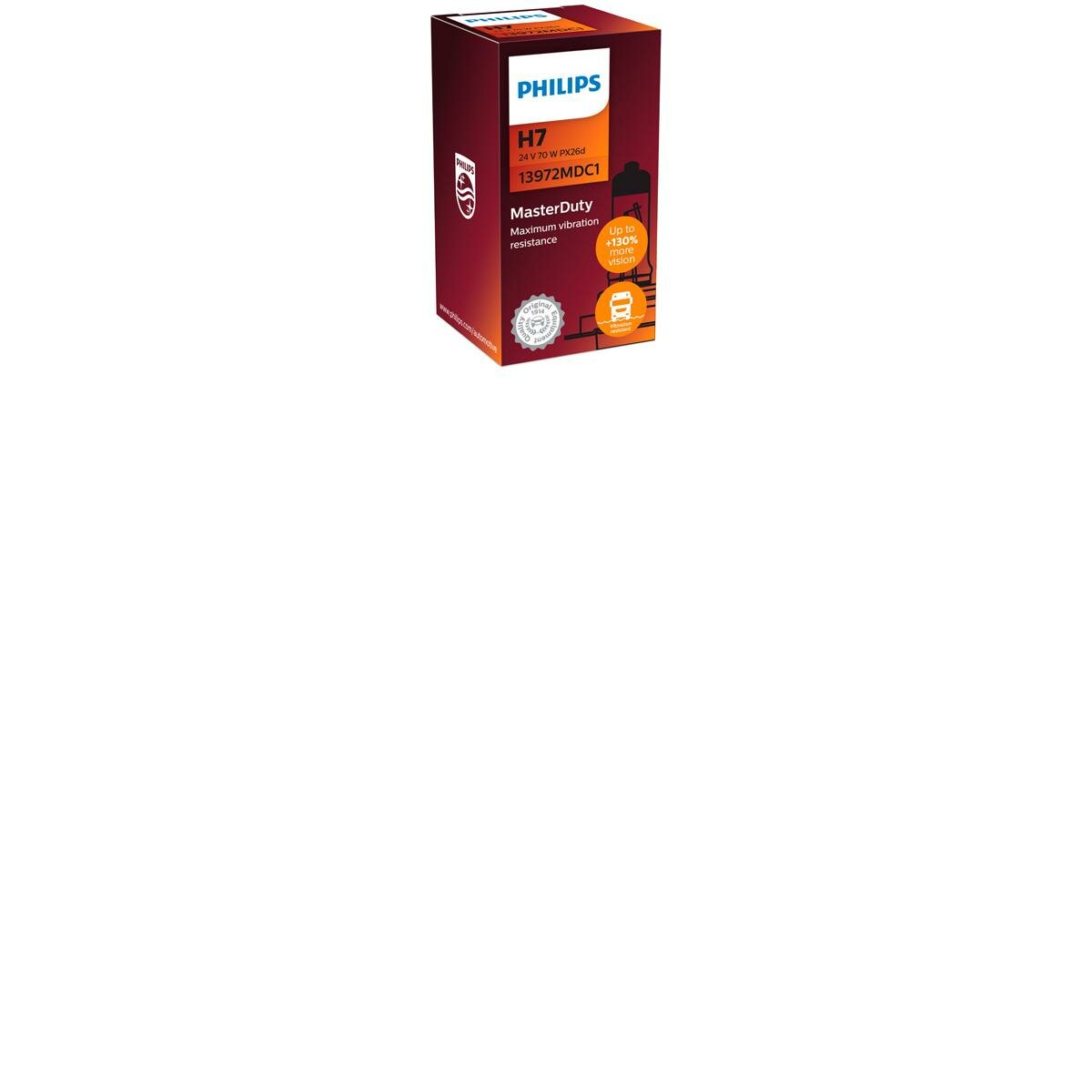 Купить PHILIPS 13972MDC1 ампа 24V H7 70W +130% PX26d 3300K PHILIPS MasterDuty 1 . картон 13972MDC1