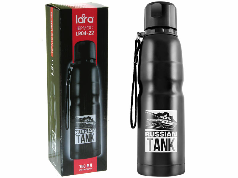 LARA LR04-22 термос (черный) 750мл, матовый, ремешок для переноски .