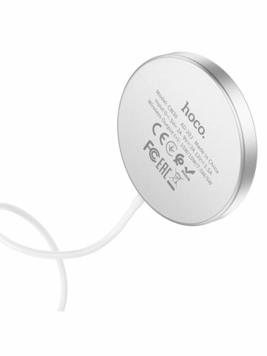 Беспроводная магнитная зарядка HOCO CW30 Pro New Upgrade с поддержкой Magsafe, Кабель Type-C 1 метр, Мощность 15W, Белый