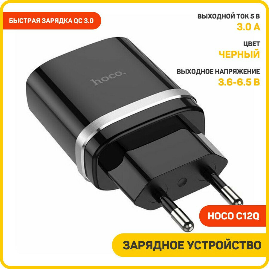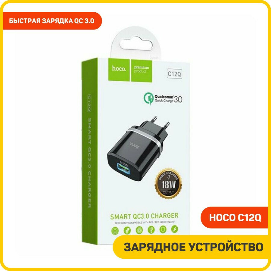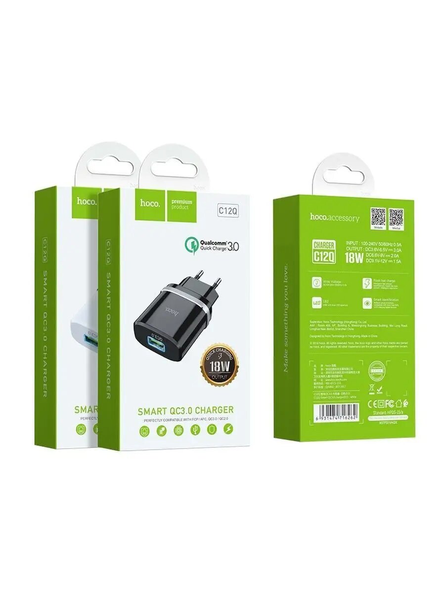 Зарядное устройство HOCO c12Q Smart QC3.0, один порт USB, 5V, 3.0A, черный
