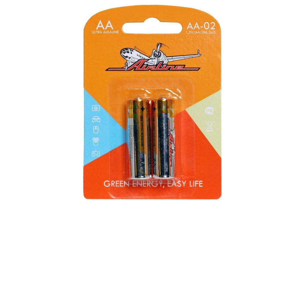 AA02 AIRLINE Батарейки LR6/AA щелочные 2 шт. блистер (AA-02)