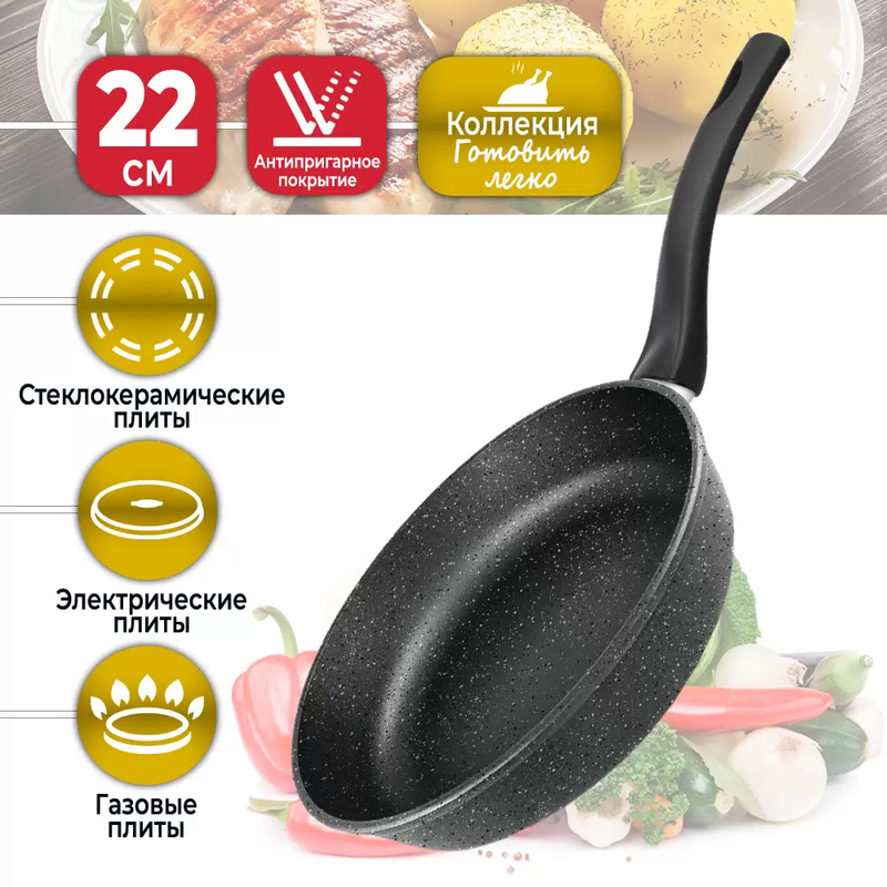 Сковорода антипригарная Готовить легко stone НМП, d-22 см
