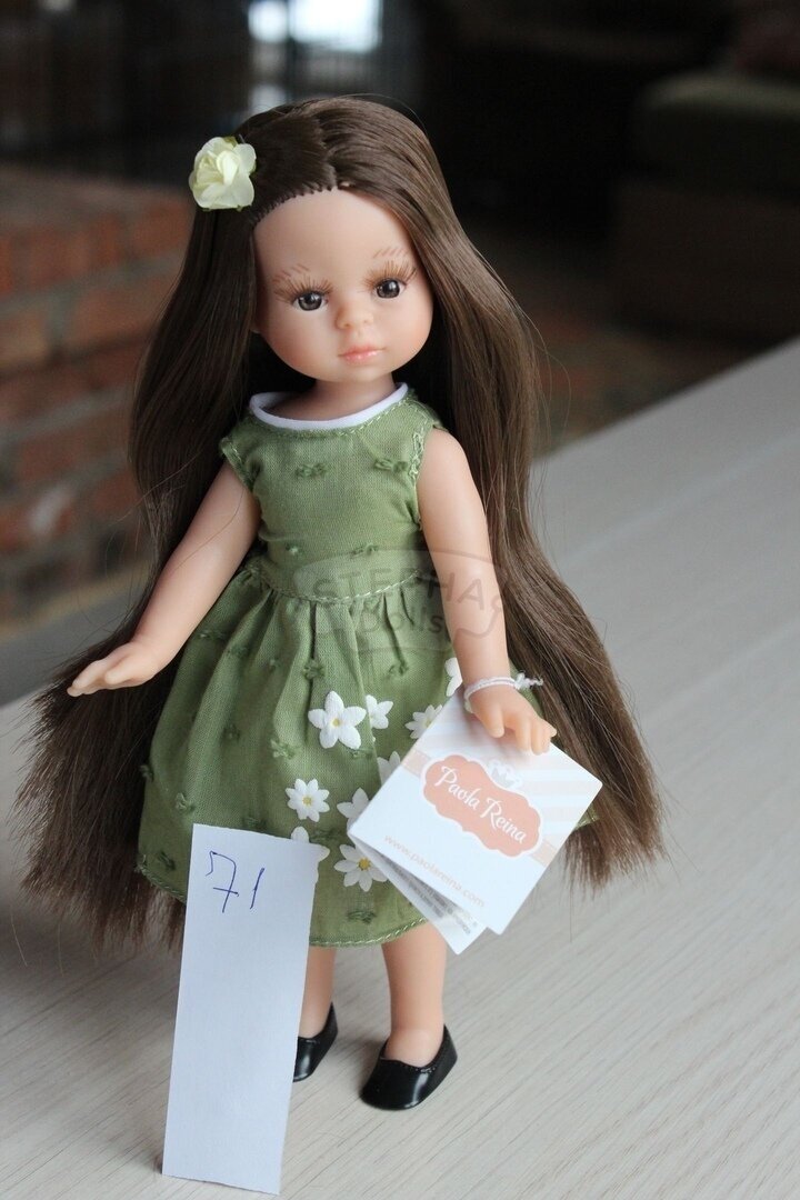 Кукла Paola Reina Эстела в зеленом платье с заколкой-цветком, 21 см
