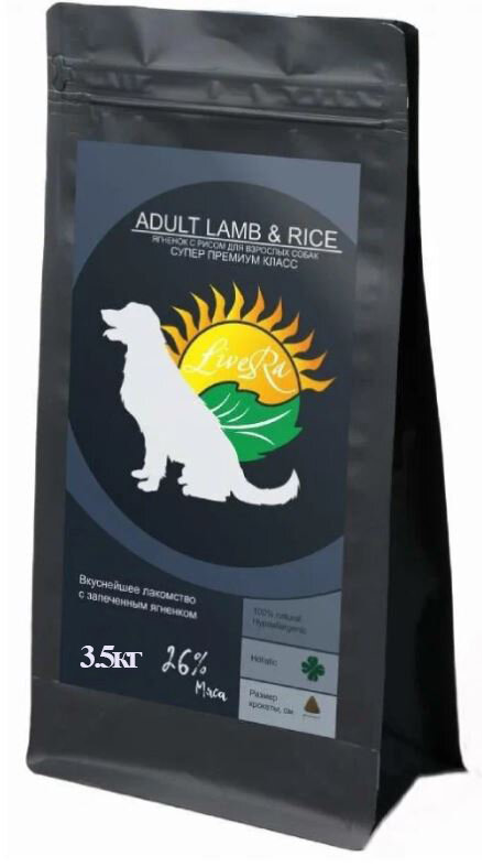 LiveRA Корм для собак Adult Lamb & Rice ягненок c рисом, 3,5 кг