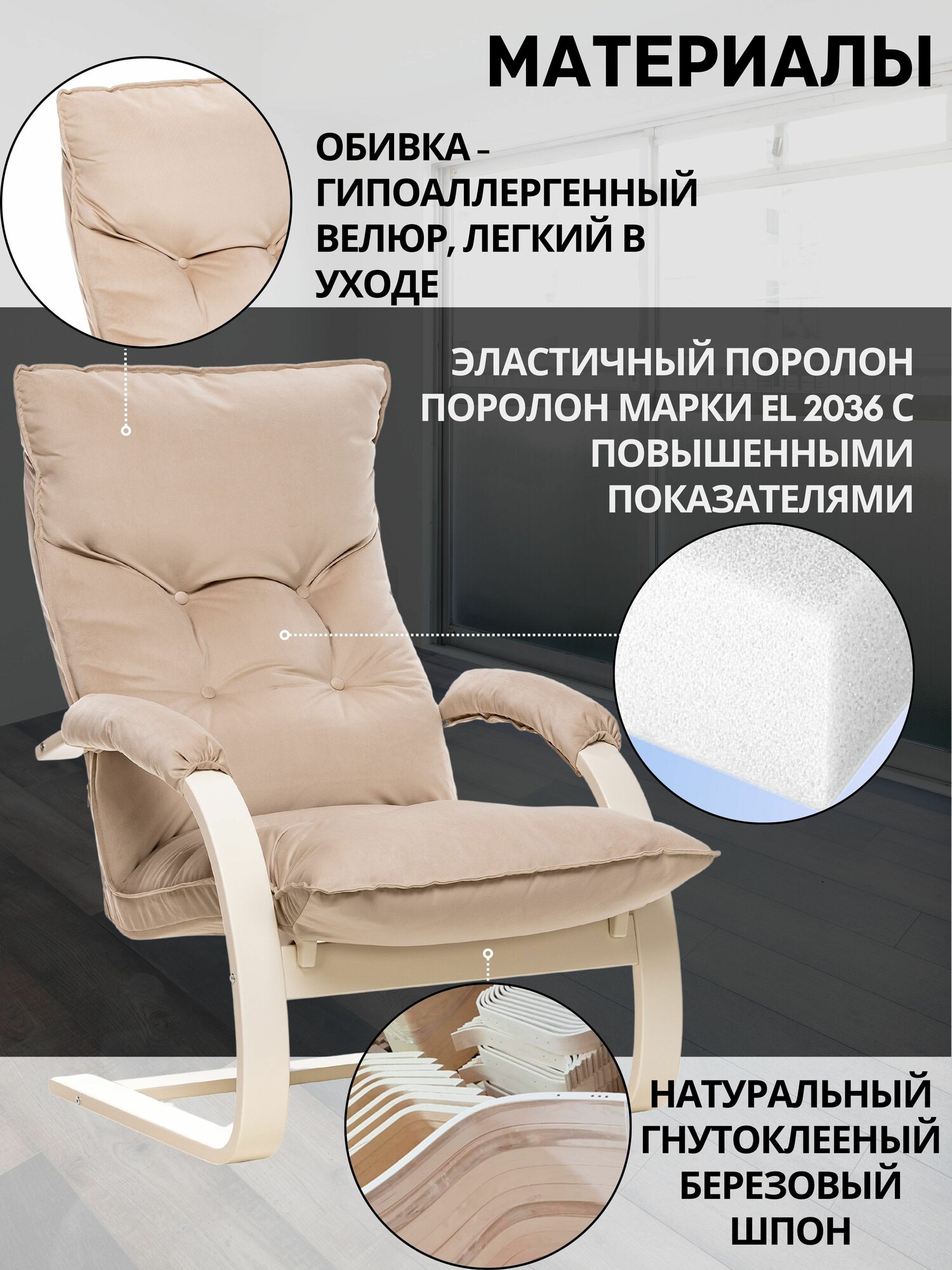 Кресло для отдыха Leset "Лион", ткань велюр бежевый, для дома, для дачи
