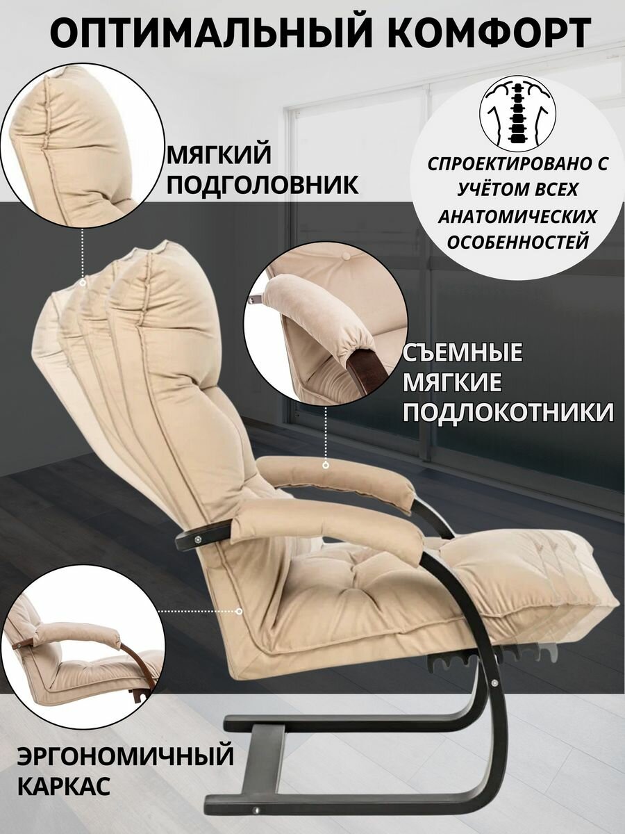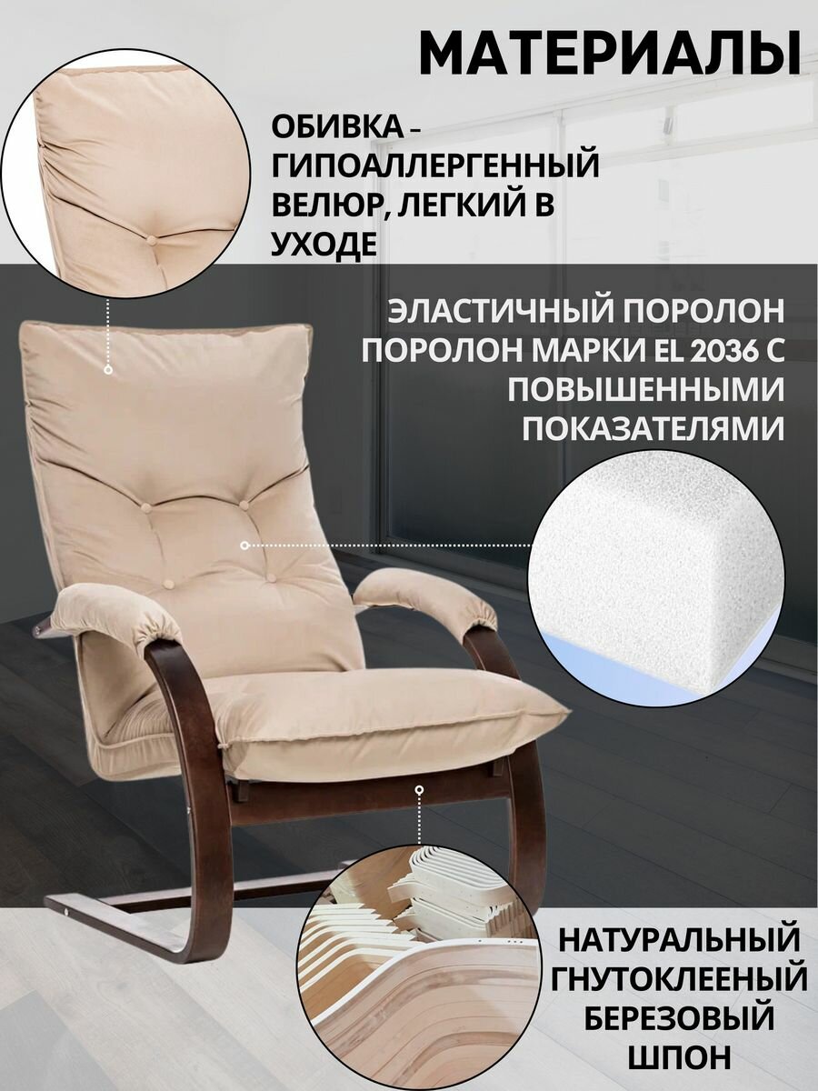 Кресло для отдыха Leset "Лион", ткань велюр бежевый, для дома, для дачи