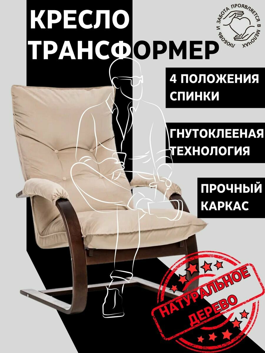 Кресло-трансформер Leset Монако, Орех, ткань велюр V18 бежевый