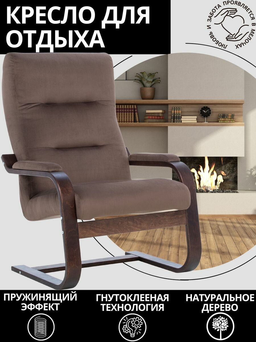 Кресло-маятник Leset Дэми Венге, ткань велюр серо-коричневый V 19, в гостиную, спальню, кабинет
