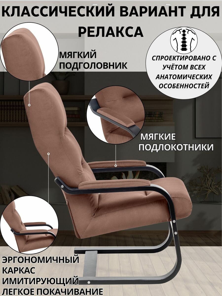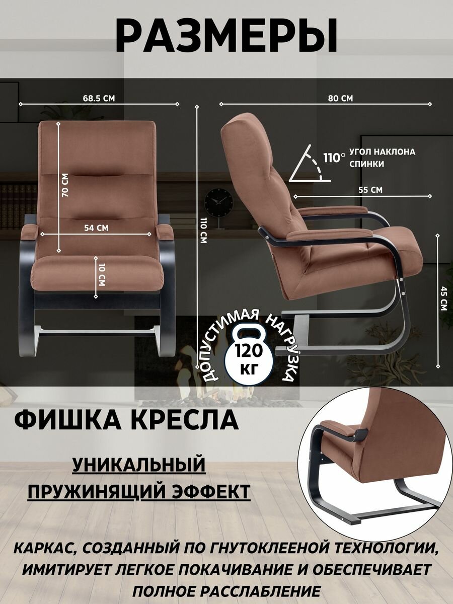 Кресло-маятник Leset Дэми Венге, ткань велюр серо-коричневый V 19, в гостиную, спальню, кабинет