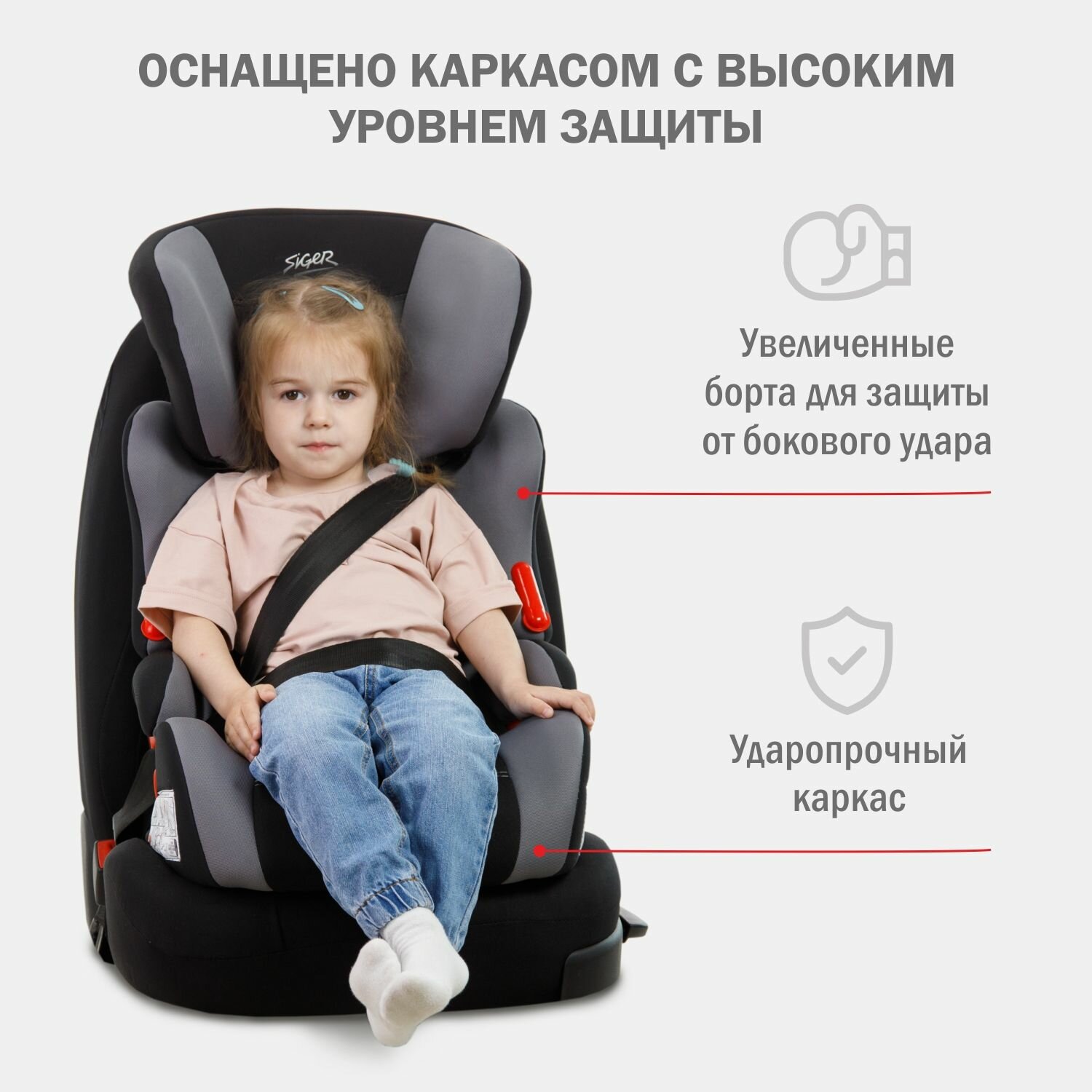 Автокресло детское Siger Космо Люкс от 9 до 36 кг, серое