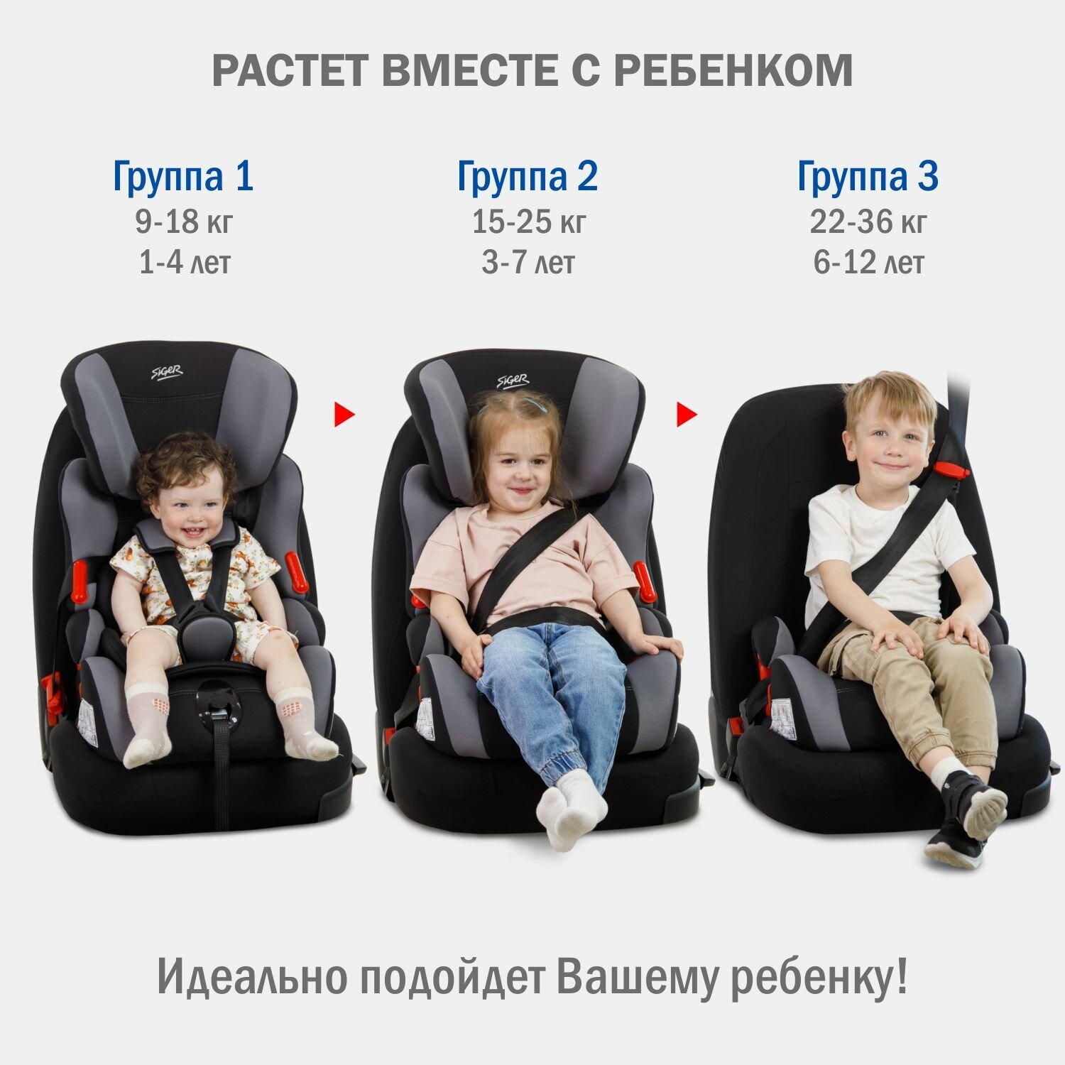 Автокресло Siger космо Lux, гр. 1+2+3 (9-36кг), серый