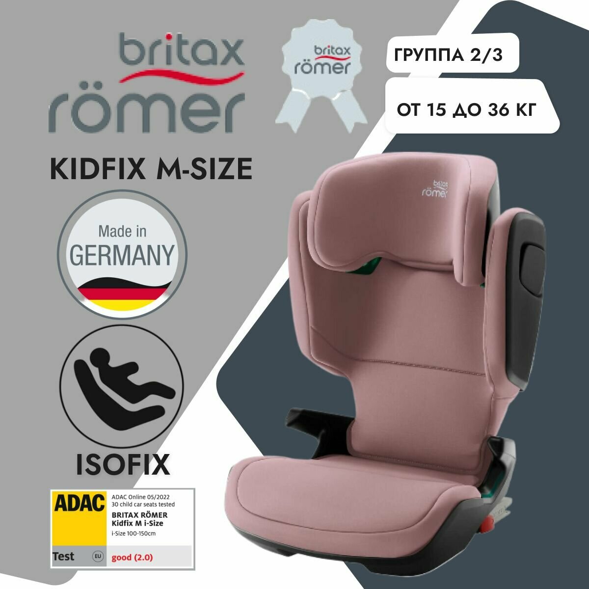 Автокресло детское Britax Roemer KIDFIX M i-SIZE Dusty Rose (100 - 150 см, группа 2-3, 15 - 36 кг)