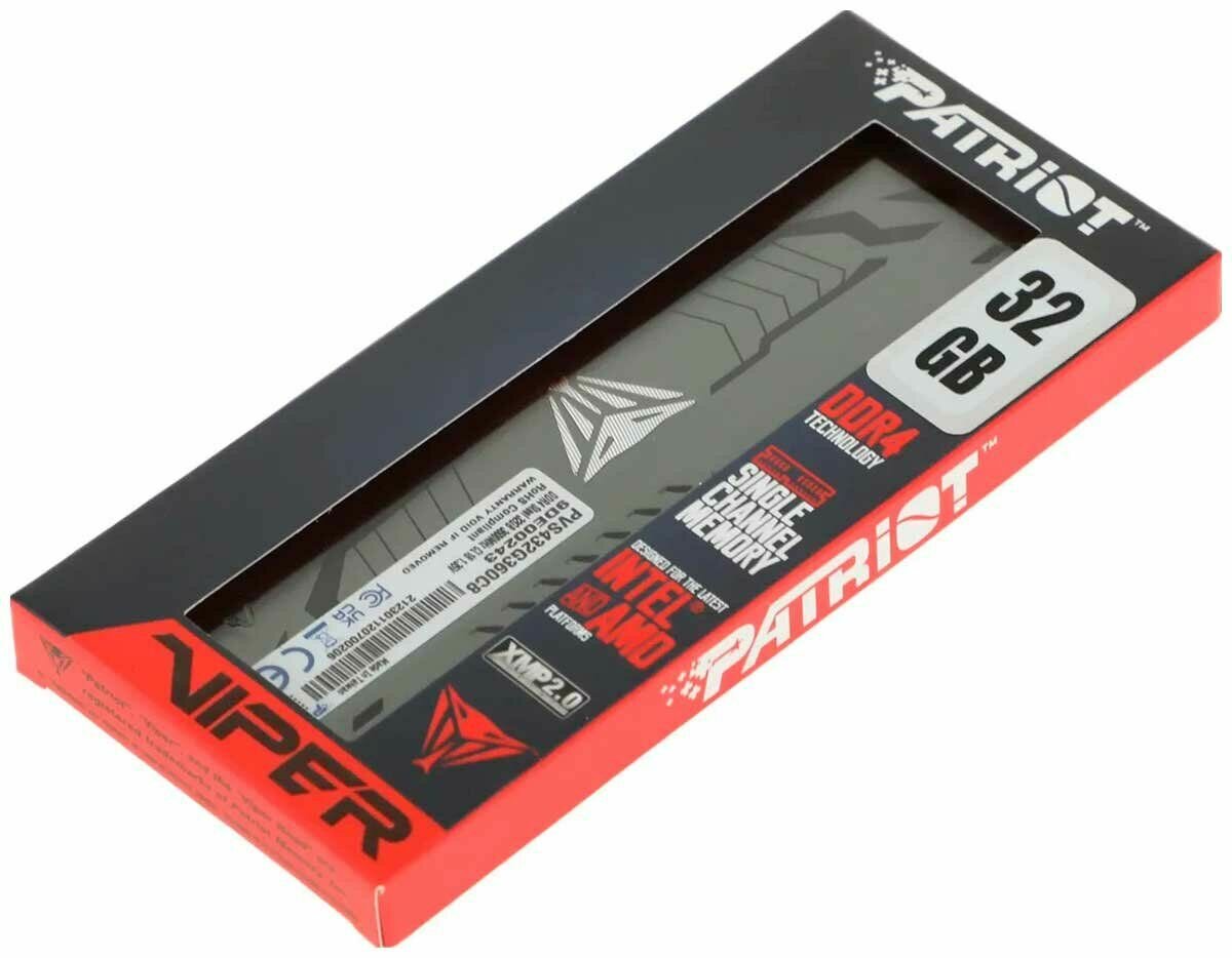 Оперативная память Patriot Memory VIPER STEEL 32 ГБ DDR4 3600 МГц DIMM CL18 PVS432G360C8