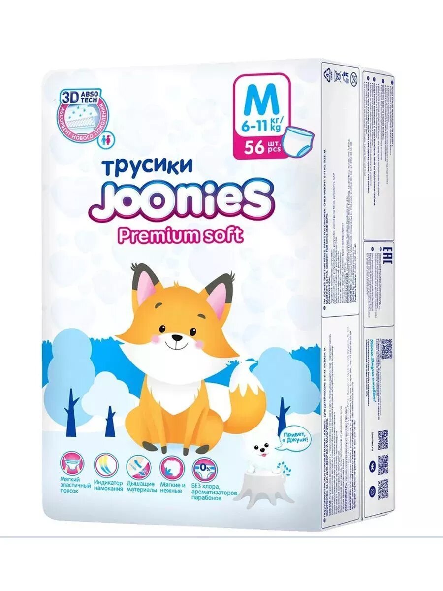 JOONIES Premium Soft Подгузники-трусики, размер M (6-11 кг), 56 шт.