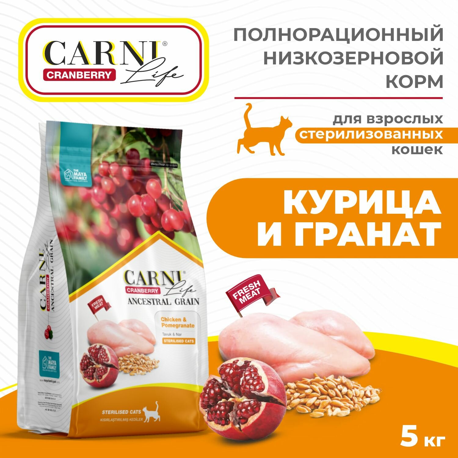 Купить Корм для кошек сухой для стерилизованных CARNI Life Курица с гранатом и клюквой, 5кг
