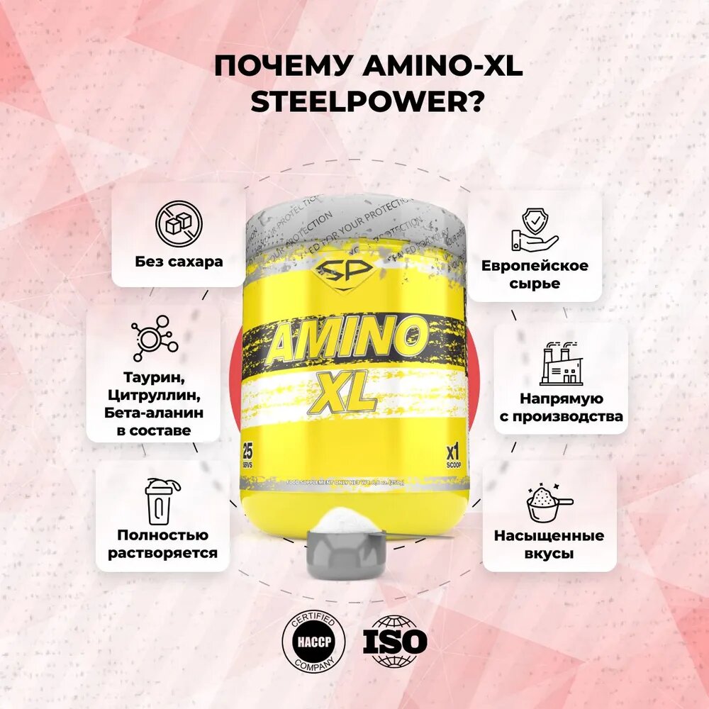 Предтренировочный комплекс STEELPOWER BCAA цитруллин таурин бета аланин AMINO-XL, 250 гр, Манго