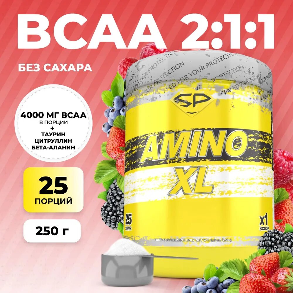 Предтренировочный комплекс STEELPOWER BCAA цитруллин таурин бета аланин AMINO-XL, 250 гр, Лесные ягоды