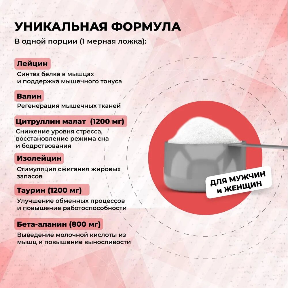 | Основной ингредиент | валин / изолейцин / лейцин / таурин / цитруллин |