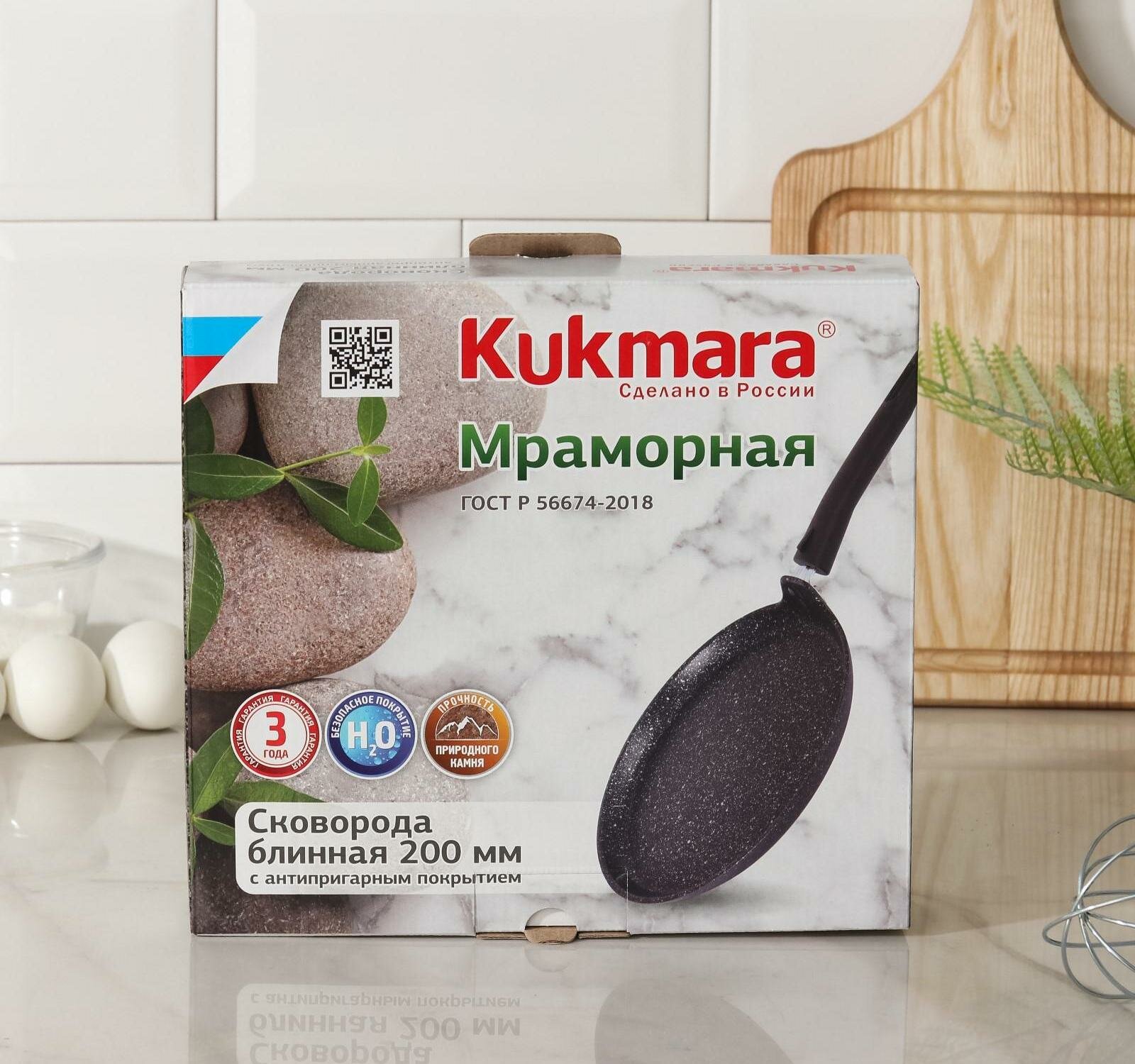 Купить Сковорода блинная KUKMARA, d=20 см, пластиковая ручка, антипригарное покрытие, светлый мрамор