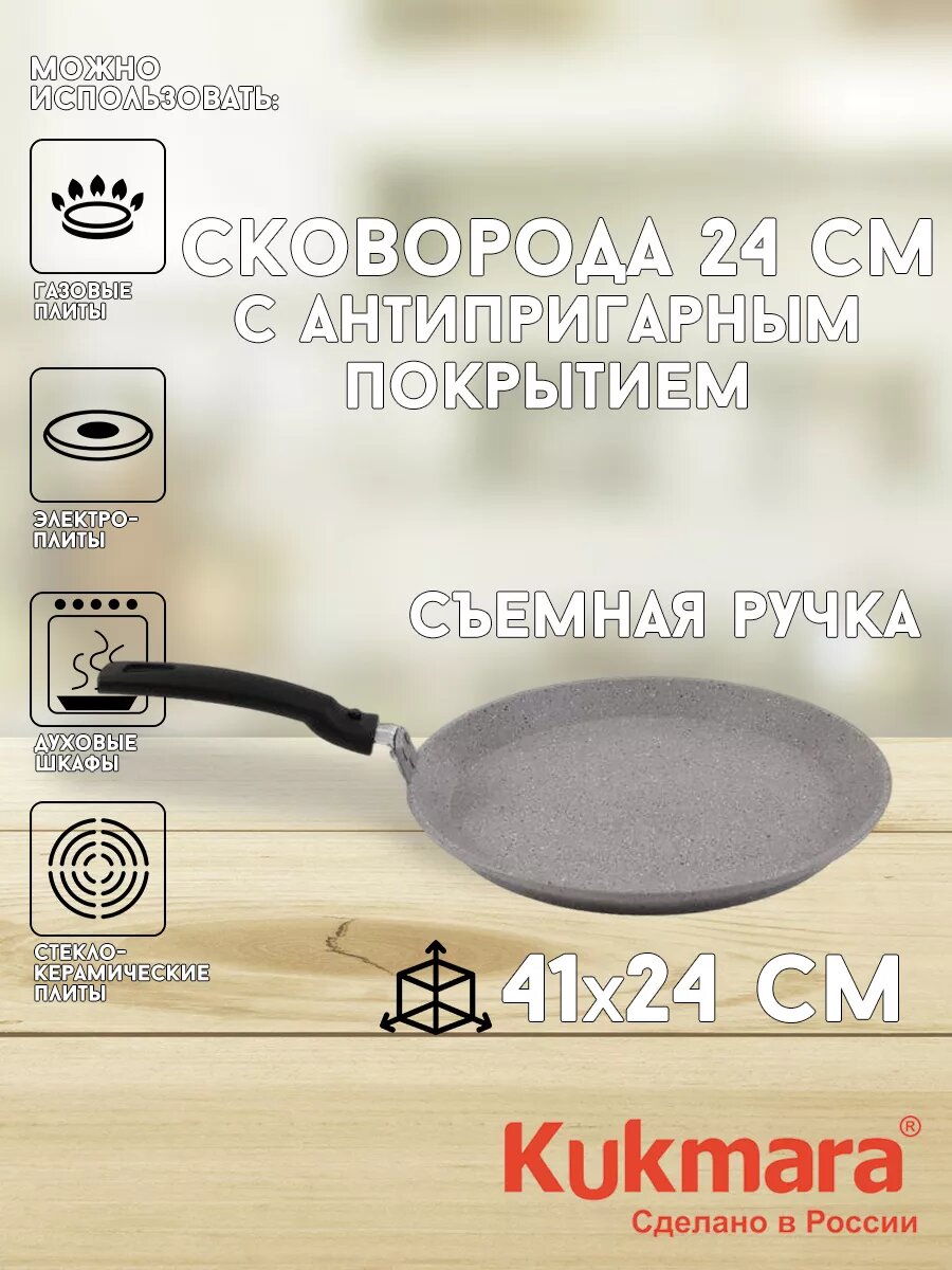 Сковорода блинная Kukmara Мраморная сбмт240-1а 24 см съемная ручка