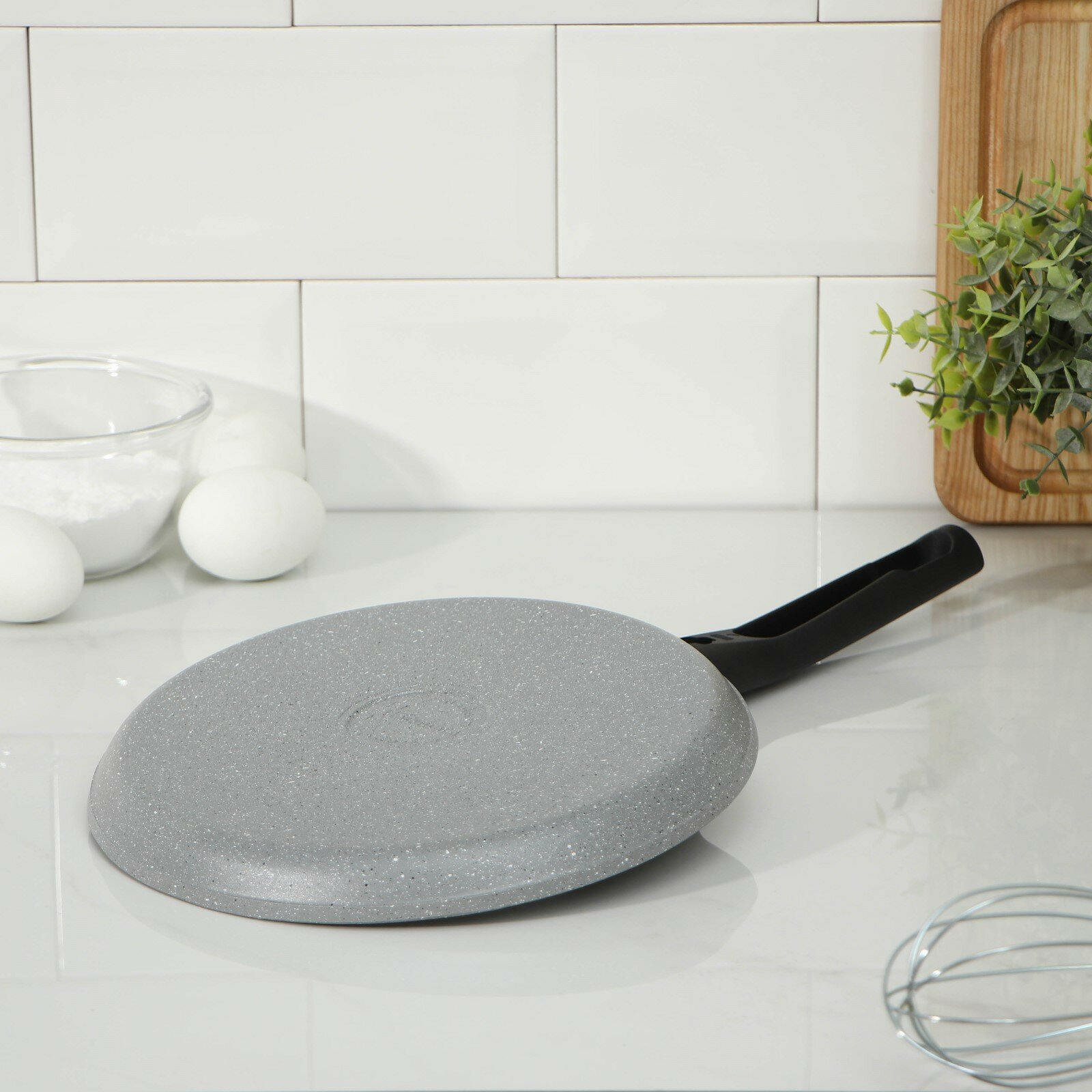 Сковорода блинная KUKMARA, d=20 см, пластиковая ручка, антипригарное покрытие, светлый мрамор