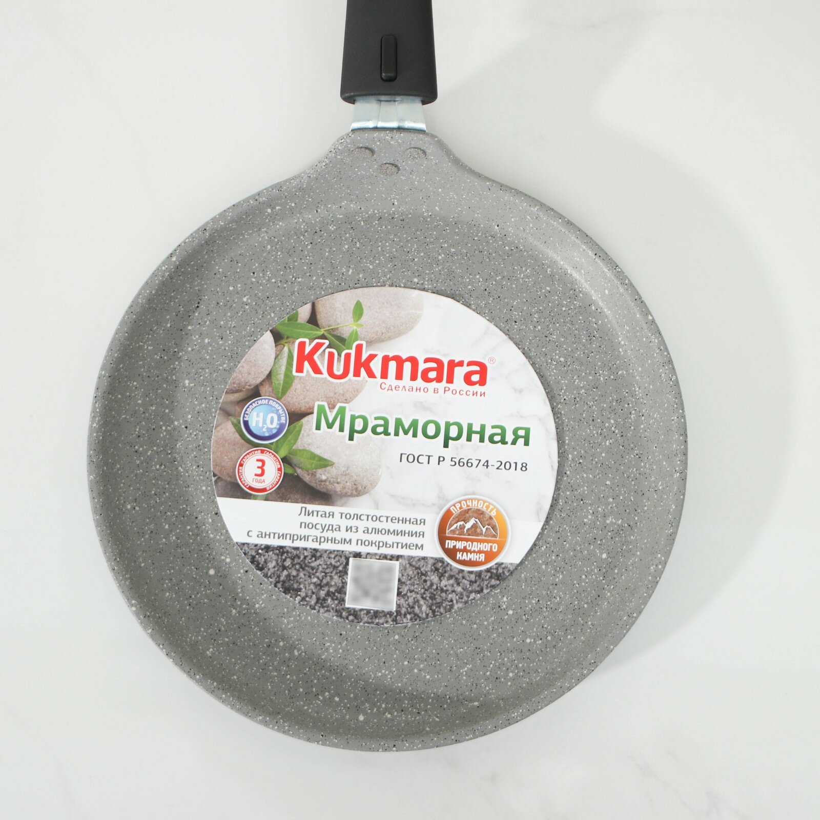Сковорода блинная Kukmara 24 см, съемная ручка, светлый мрамор (сбмс240-1а)