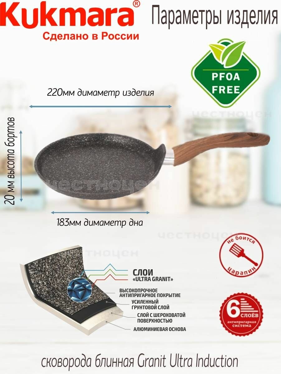 Сковорода блинная Kukmara Granit Ultra сбго220а, диаметр 22 см