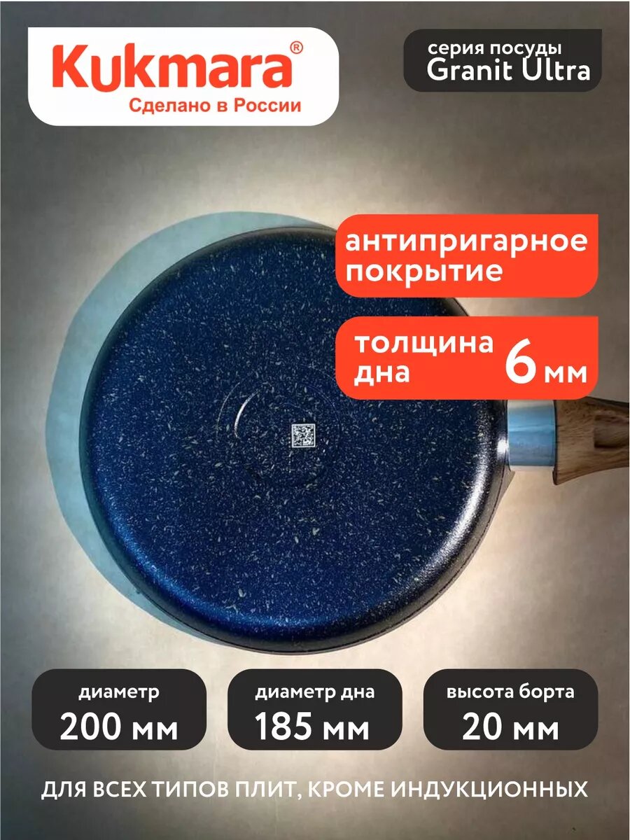 СохранитьСковорода Kukmara блинная 200 мм с индукционным дном, Granit Ultra ( blue) , сковорода для индукционных плит/блинница Granit Ultra интересное: