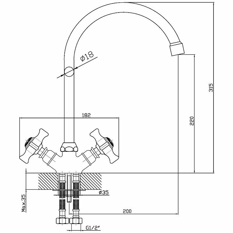 Смеситель для кухни Agger Retro-X A1700000 двухзахватный 326