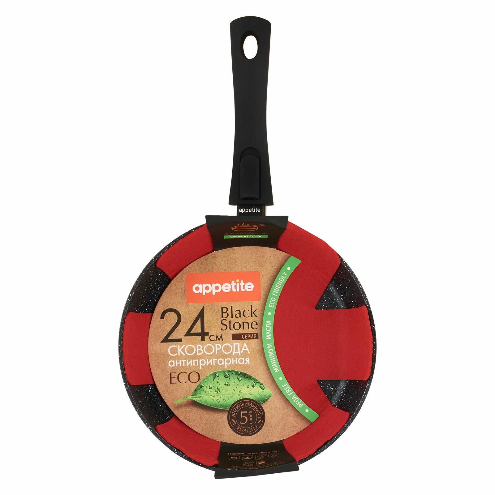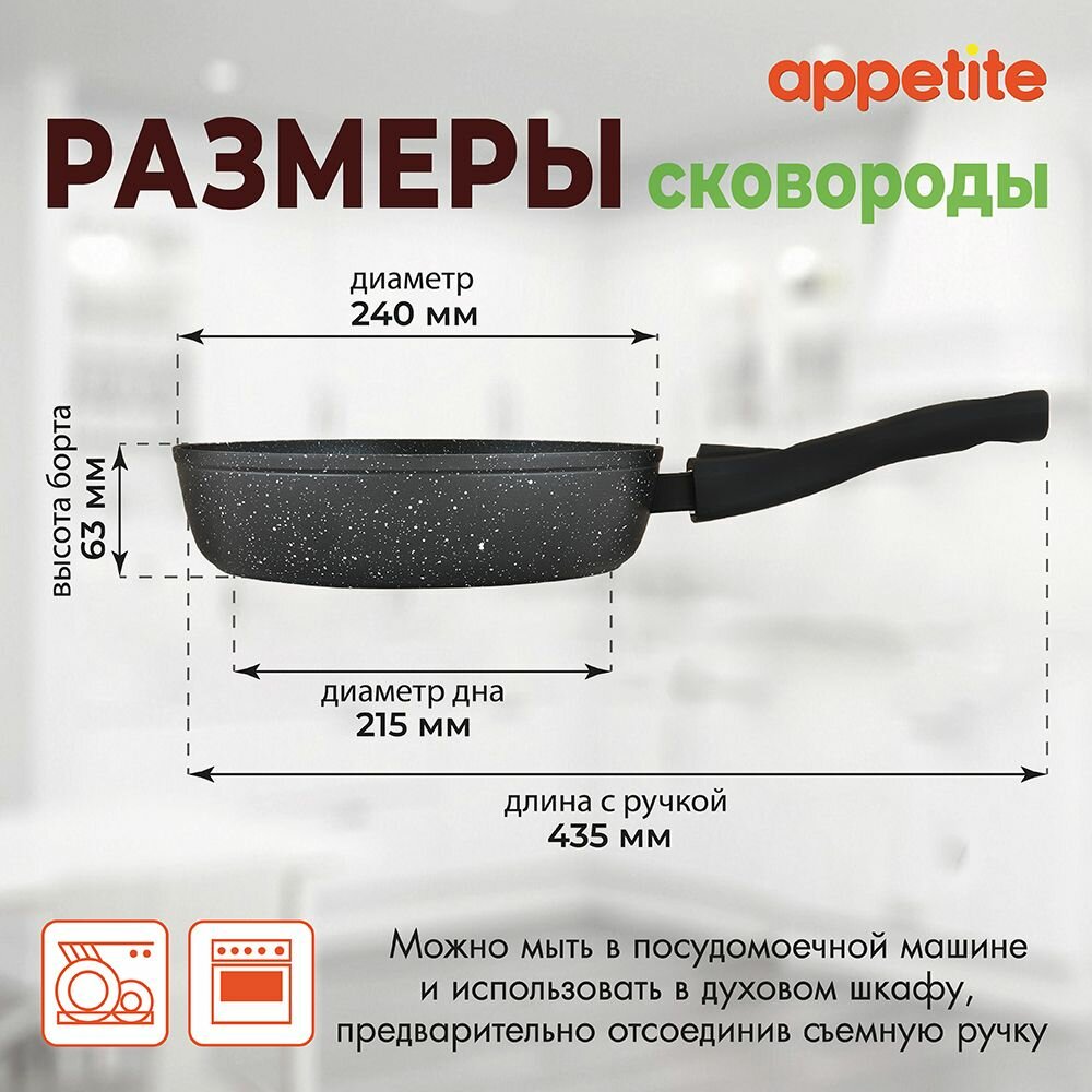 Сковорода Appetite Black Stone 24 см со съемной ручкой
