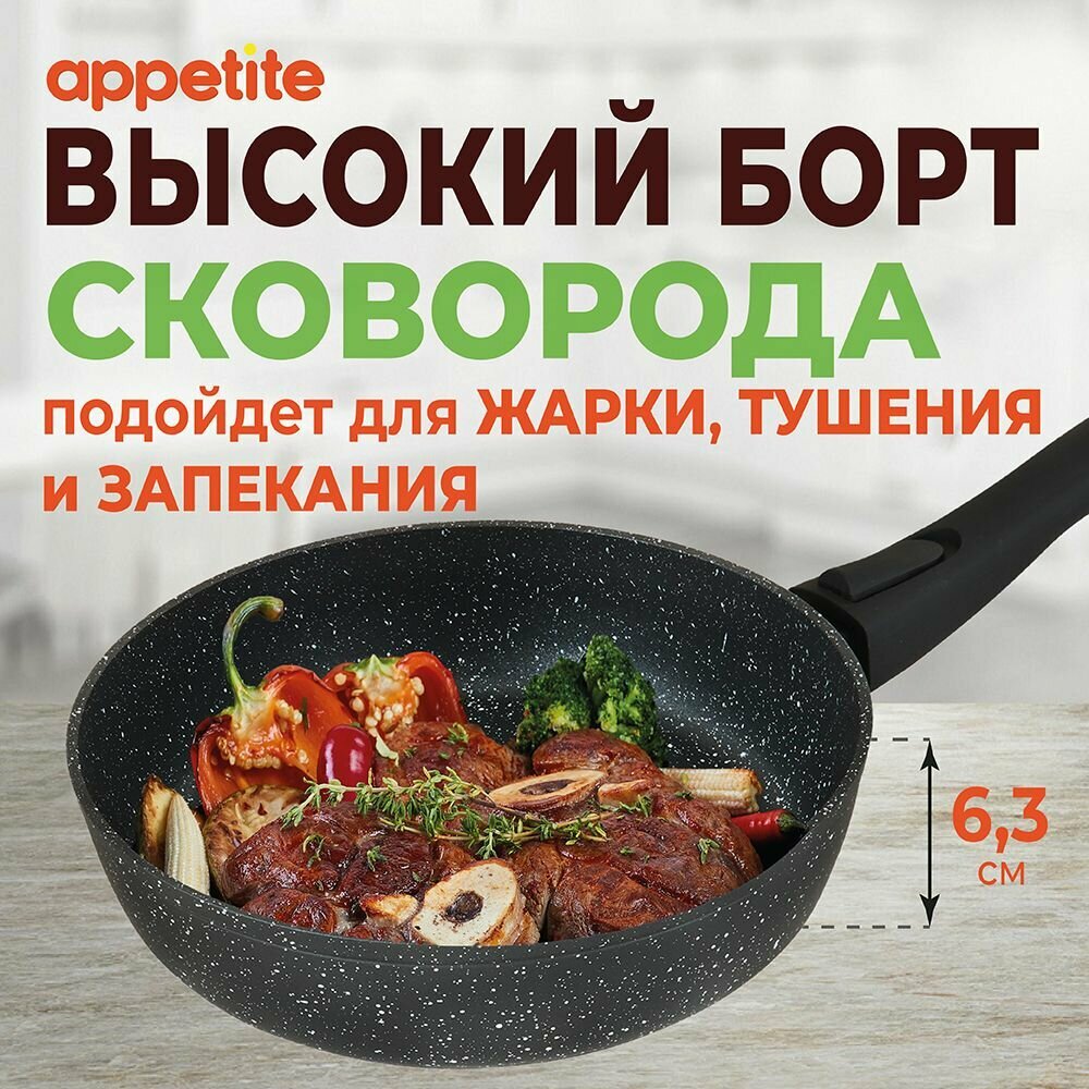 Сковорода глубокая Appetite Black Stone со съемной ручкой 26см BL2261