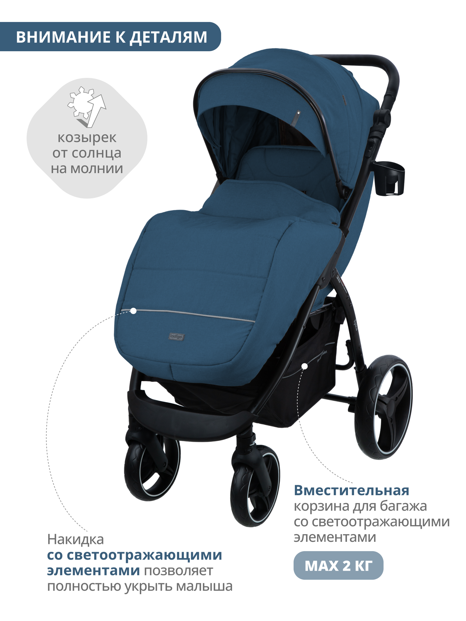 Коляска прогулочная детская Indigo EPICA XL с большими колесами всесезонная складная, синий