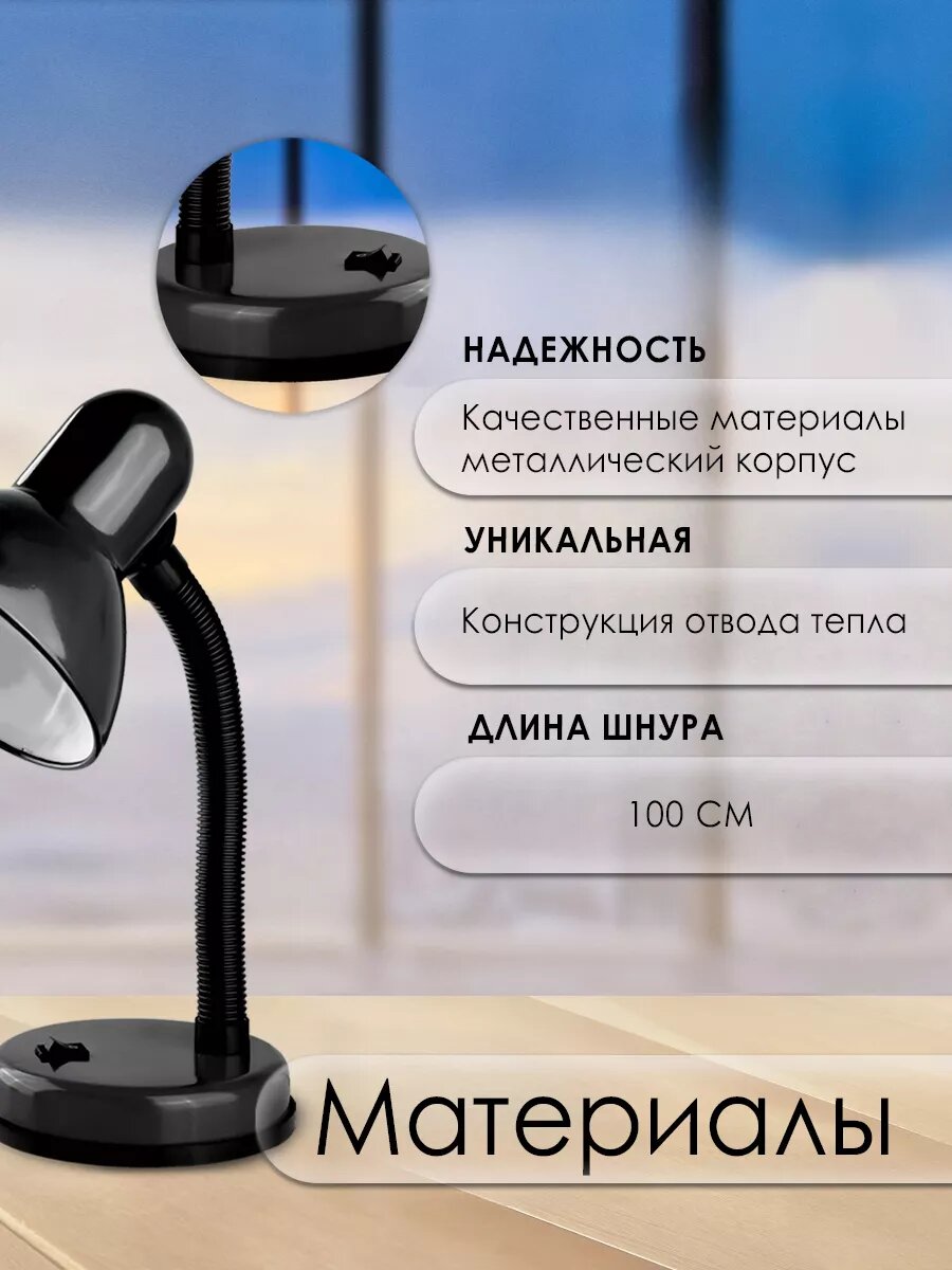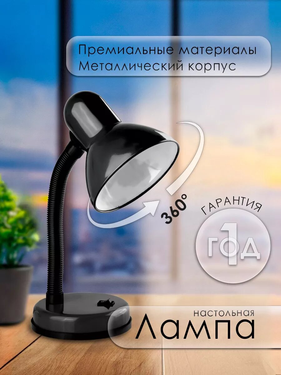 Лампа офисная Ultraflash UF-301, E27, 60 Вт, черный