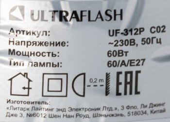 Ultraflash UF-312P С01 белый Светильник настольный,230V 60W