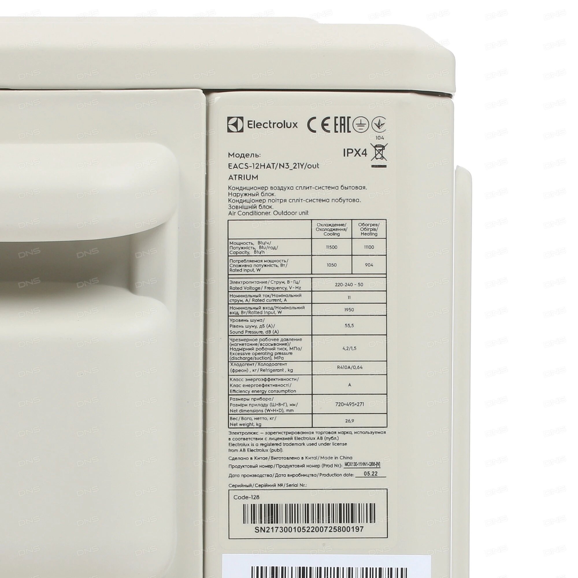 | Наружного блока сплит-системы или оконного кондиционера (ШxВxГ) | 72x49.5x27 см |