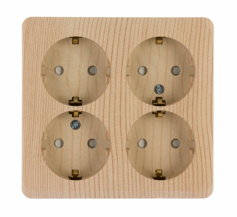 Розетка накладная четырехместная Этюд Schneider Electric c/з со шторками, цвет Сосна