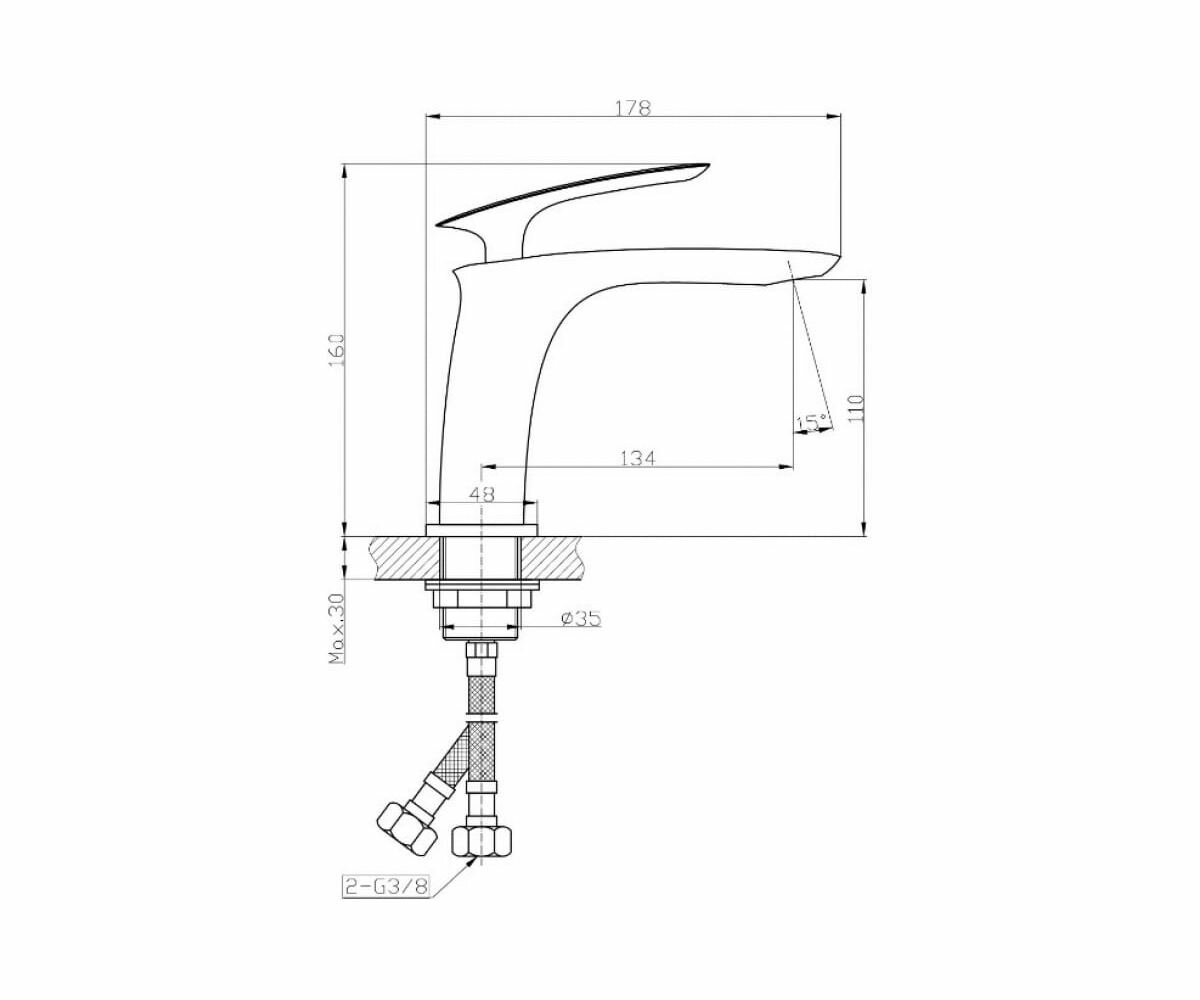 | Комплектация | смеситель - 1 шт., комплект для крепежа - 1 шт., гибкая подводка - 2 шт. |