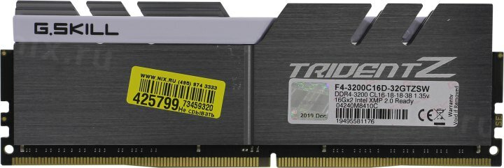 Оперативная память G.SKILL Trident Z 32 ГБ (16 ГБ x 2 шт.) DDR4 3200 МГц DIMM CL16 F4-3200C16D-32GTZSW