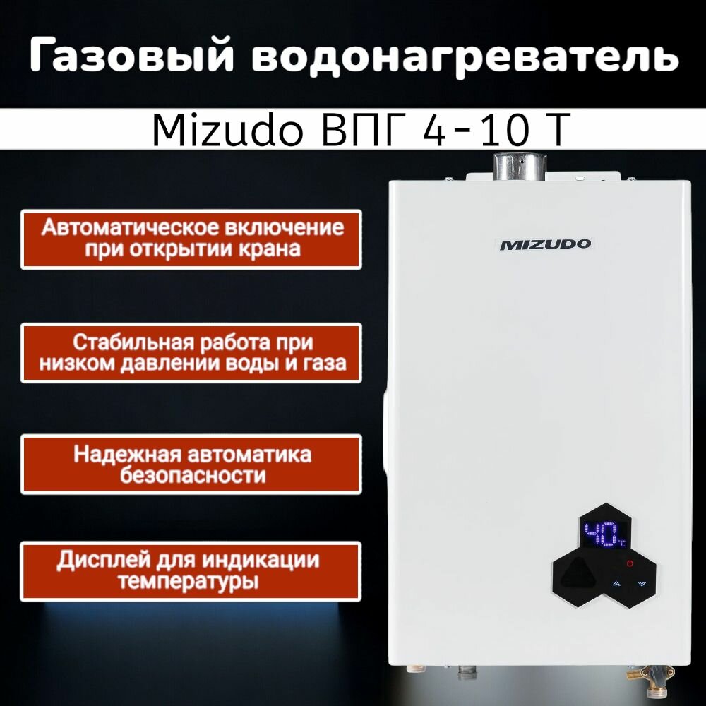 Проточный газовый водонагреватель Mizudo ВПГ 4-10 Т, белый
